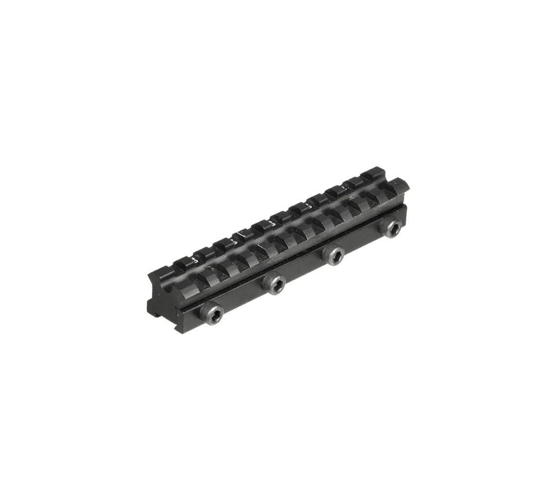Base per attacco Scina/Dovetail 9 e 11. Permettono di avere una base Picatinny/Weaver da 11 slot su cui installare ottiche od accessori vari.