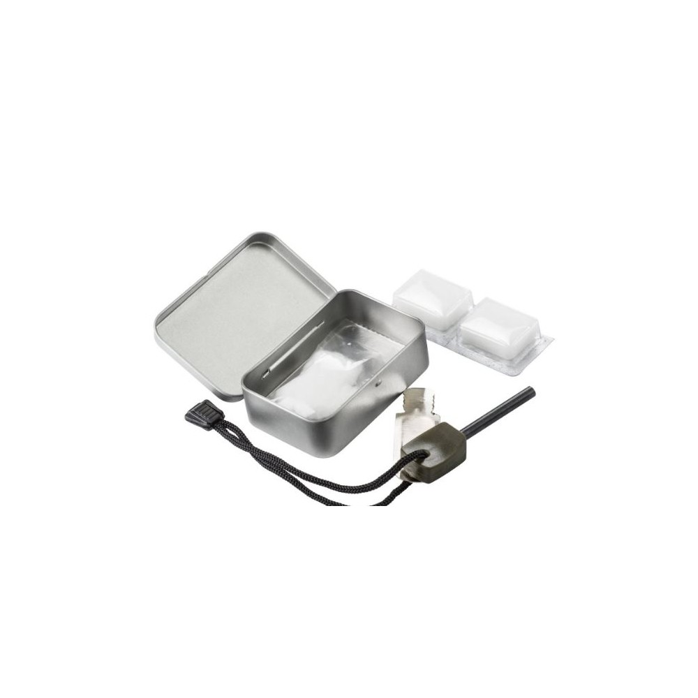 Scout Mk2 Firestarter è un set che ti permette di accendere un fuoco in modo efficace senza usare fiammiferi o accendini. La scatola in acciaio inclusa nel set permette di trasportare l'accendifuoco e altri elementi senza il rischio di perderli.