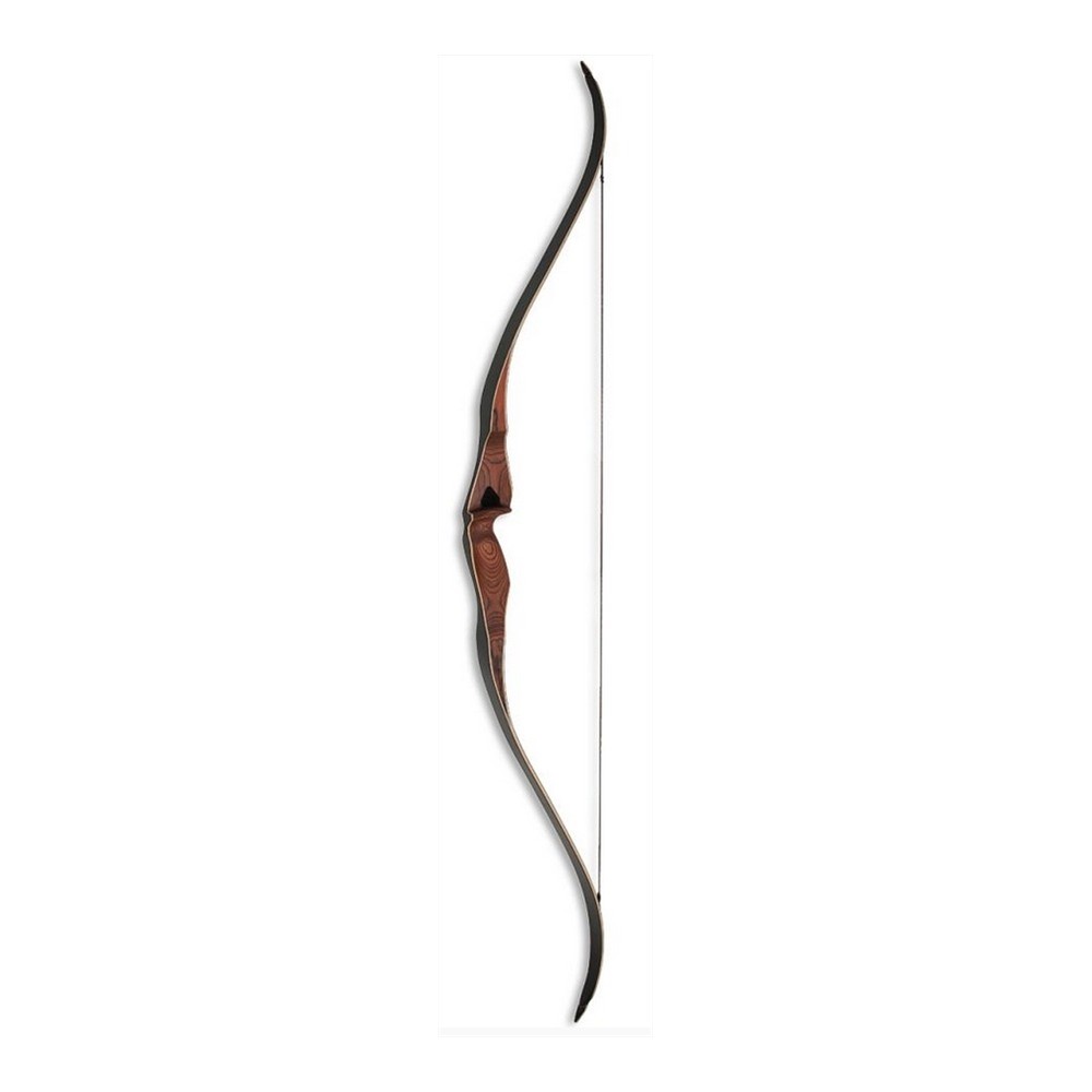 Arco monolitico dall'incredibile rapporto qualità/prezzo. Lunghezza 62", disponibile in libraggi da 25# a 50#, destro e mancino. Riser in legno Dymond con flettenti in acero rivestiti da fibra nera. Viene fornito con rest a tappetino e corda Flemish in FF. Brace height consigliato 8".
