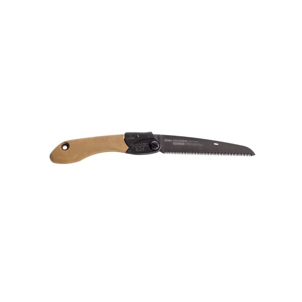 La sega pieghevole Pocketboy Outback Edition è perfetta per ogni tipo di potatura nonostante le sue dimensioni ridotte. La lama si blocca in due diverse posizioni con il meccanismo di blocco. Si sblocca e si piega facilmente facendo si che i denti affilati rimangano coperti in modo sicuro in quanto completamente nascosti dentro l’impugnatura. Si dispiega facilmente grazie alla tacca nella lama, persino quando si indossano dei guanti. Il foro nell’impugnatura offre la possibilità di attaccare una corda o un moschettone al seghetto, ma si può anche portare il seghetto all’interno della rigida custodia trasparente.
