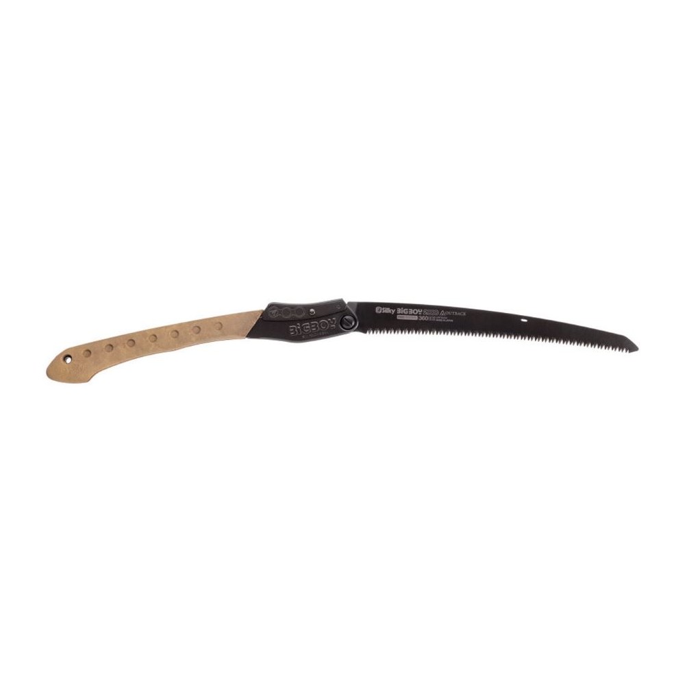 La sega multifunzionale pieghevole Bigboy 2000 con la sua robusta lama leggermente ricurva da 360 mm e con la sua configurazione dei denti Extra Large si può arrivare lontano e segare facilmente sopra l'altezza delle spalle. Esegue la corsa di trazione, che risulta naturale e richiede poco sforzo. La curva fa sì che i denti afferrino il legno con facilità ed evita che la sega cada dal taglio della sega. Grazie alla curva si ha controllo sia in legno fresco che secco. La lama può essere semplicemente piegata e aperta tramite il pulsante di blocco e ha due diverse posizioni di taglio. Il foro nell'impugnatura offre la possibilità di agganciare un moschettone o una fune alla sega.