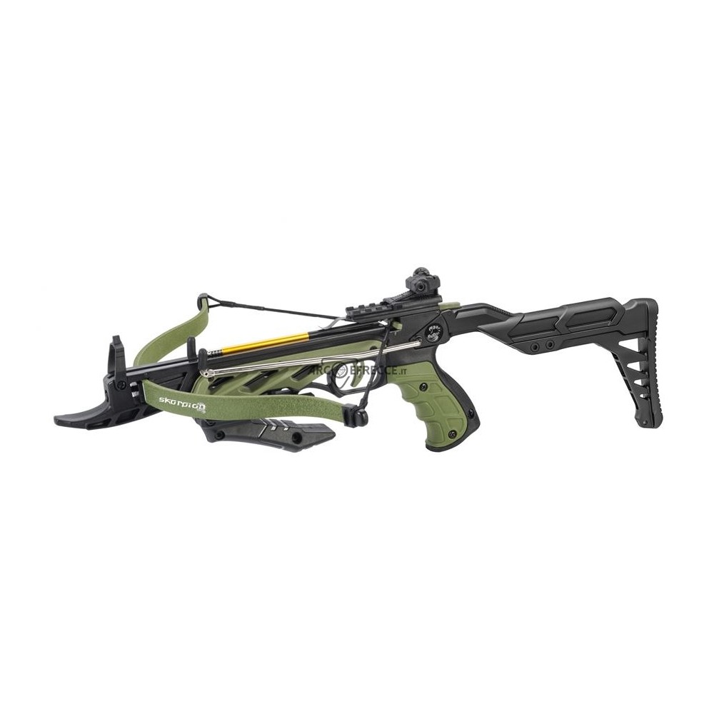 Pistola balestra targa Skorpion con calcio allungabile che rende la fase di mira e di caricamento molto più semplici ed efficaci.