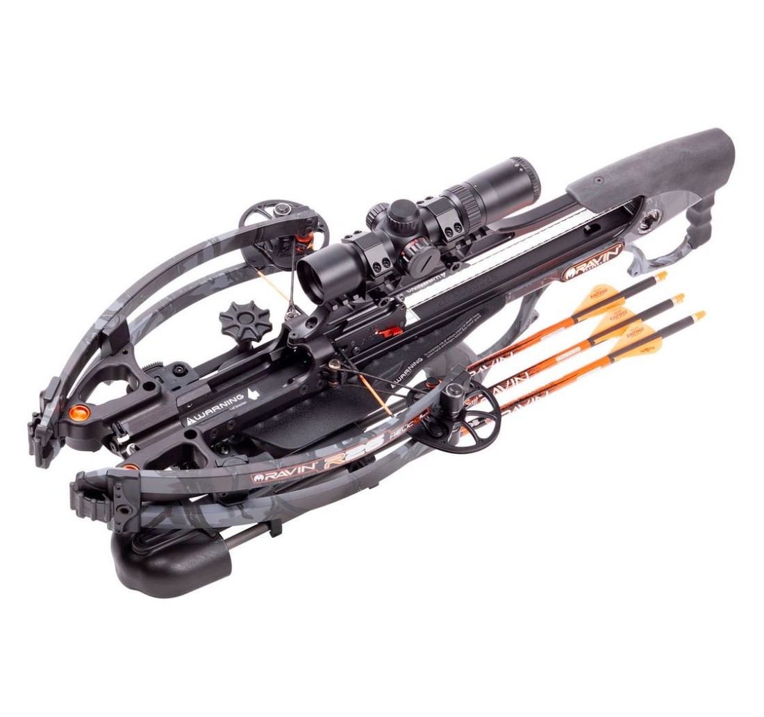 La Ravin R26 è una delle balestre più compatte e leggere sul mercato. Pesa meno di 3 Kg. e, quando è carica ha una larghezza asse/asse di soli 5.75". Il dardo viene scagliato ad una velocità di 400 fps. sviluppando un'energia cinetica di 142 fp.
