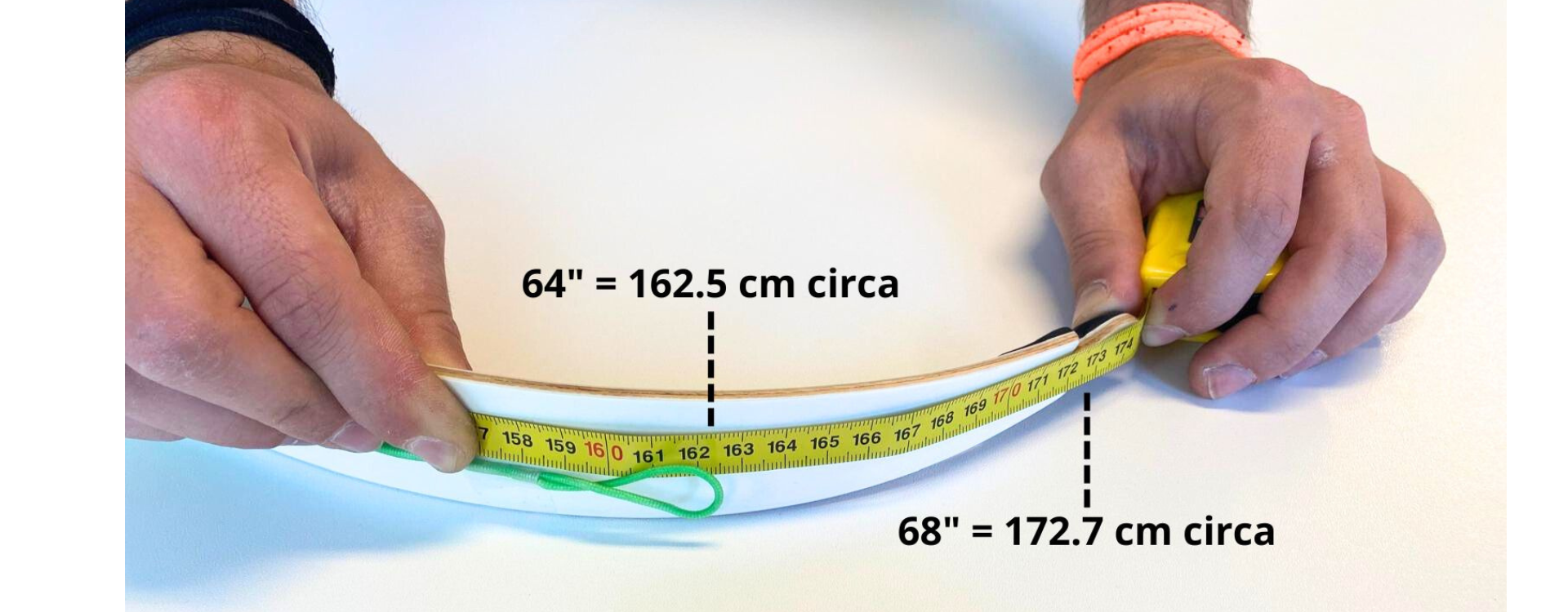 La spiegazione è piuttosto semplice: la misura dell'arco ricurvo, per intenderci quella indicata sui flettenti, è la misura convenzionale dell'arco scarico, senza corda, seguendo la geometria del flettente.