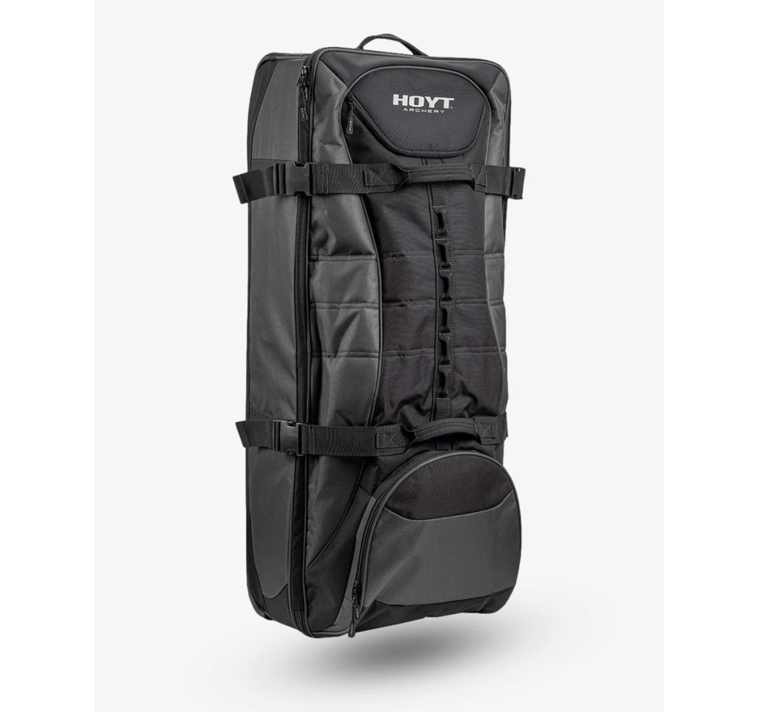 Comodo e spazioso borsone trolley con ruote. Può contenere l'attrezzatura completa (archi compound fino a 39" asse/asse) oltre ad abbigliamento, scarpe e tutto quello che può servire portarsi dietro per una trasferta con l'arco. Perfetto sia per il trasporto su macchina che per i viaggi in aereo.