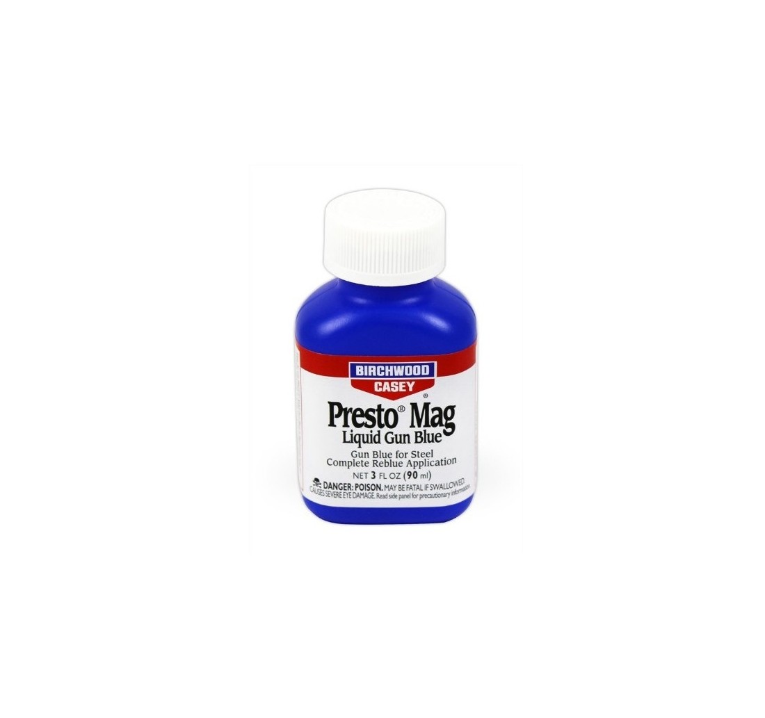 Birchwood Presto Mag gun blue, brunitore liquido per acciaio. Di colore blu freddo, è adatto per tutti i tipi di acciaio ad esclusione dell’acciaio inossidabile.