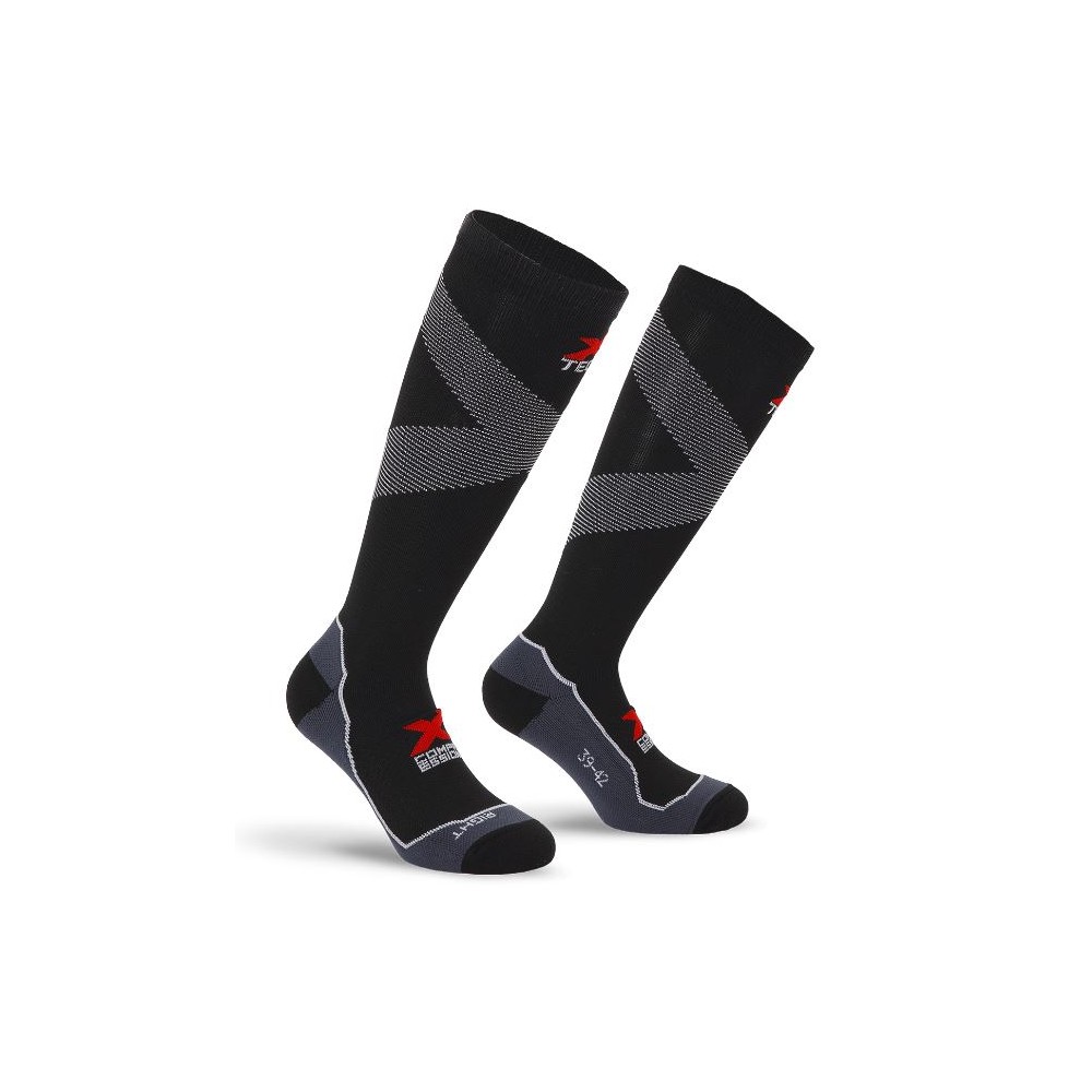 Calza tecnica a compressione graduata realizzata con tecnologia “left & right”, prodotta con materiali estremamente traspiranti e morbidi al tatto. Soletta del piede con inserti in 3D che creano un micromassaggio stimolando la circolazione. I tessuti anallergici ostacolano la formazione di cattivi odori.