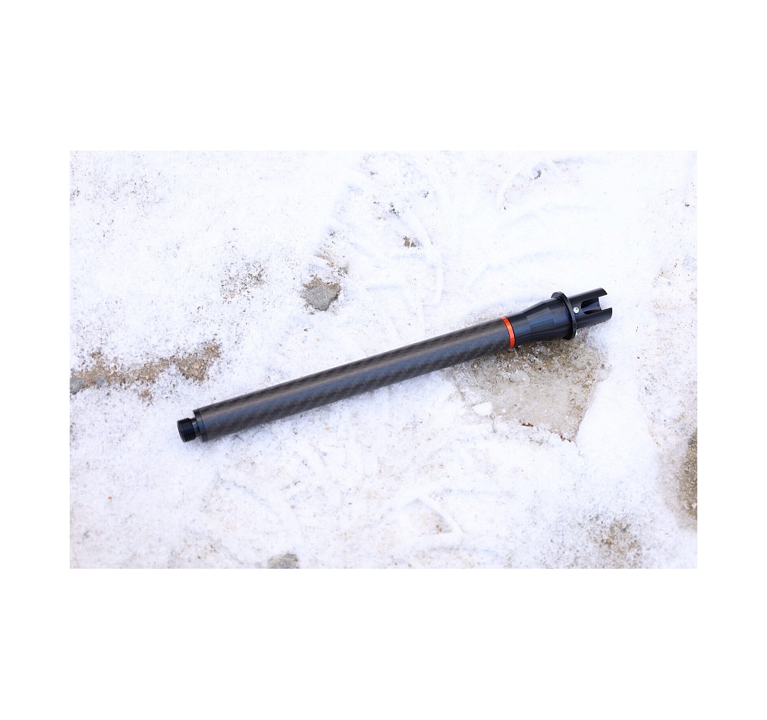 Nuovamente progettata, estremamente resistente e, rispetto alle canne esterne in metallo, molto leggera: questa canna esterna per repliche airsoft in stile AR15 (M4). La parte principale della canna – il tubo in fibra di carbonio con uno spessore di 2 mm e un diametro di 19 mm – è molto resistente, leggero e conferirà alla tua replica un aspetto unico. Il tubo è realizzato tramite laminazione di tessuto in carbonio e non è un’imitazione sotto forma di stampa su un tubo di plastica. La denominazione 3K indica il tipo di intreccio delle fibre di carbonio.