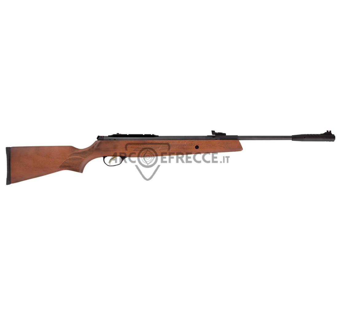 Hatsan fucile CAC 95 Wood in calibro 5,5mm: Azione break barrel a colpo singolo. Gruppo scatto match completamente regolabile a 2 stadi. Il sistema di ammortizzatori SAS riduce significativamente le vibrazioni. Calcio in noce turco autentico e di alta qualità: stile da caccia, design ambidestro, ergonomico ed elegante. Zigrinatura sull'impugnatura e sull'avambraccio per un miglior controllo e sensibilità. Calciolo in gomma per l'assorbimento del rinculo. Binario di montaggio per cannocchiale adatto sia per supporti per cannocchiale da 11 mm che da 22 mm e fermo per cannocchiale montato.