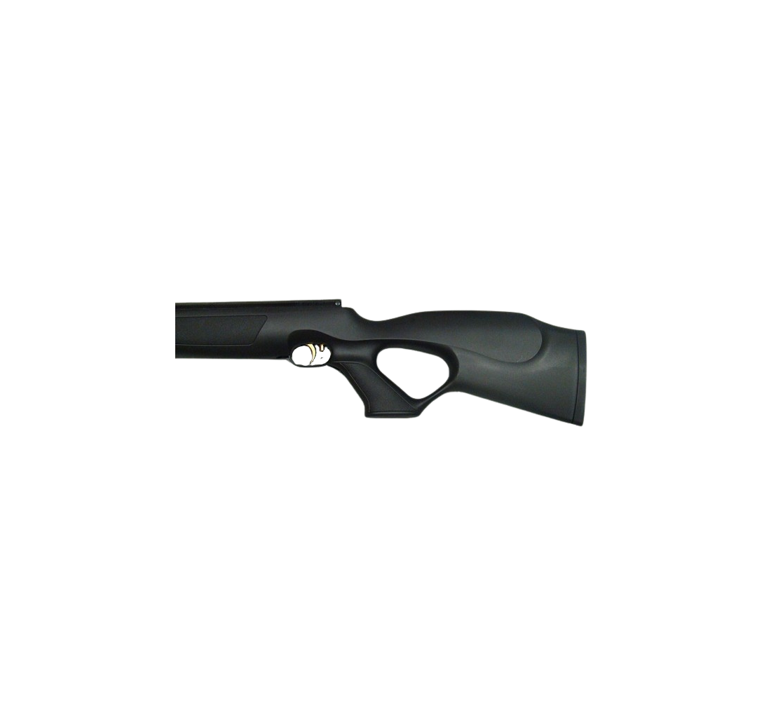 Weihrauch carabina HW 977-T, con calciatura in polimero nero, versione "T" con calcio thumbhole ideato per il field target, con calciolo in gomma registrabile.