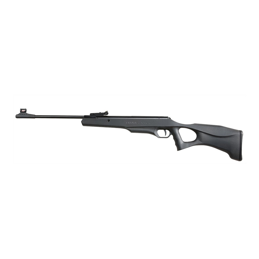 Diana carabina Eleven, a canna basculante leggera, dal design moderno ed accattivante e dal prezzo particolarmente competitivo. Grilletto metallico a scatto diretto, mire TRUGLO con inserti in fibra ottica, alzo regolabile in altezza e scostamento laterale.