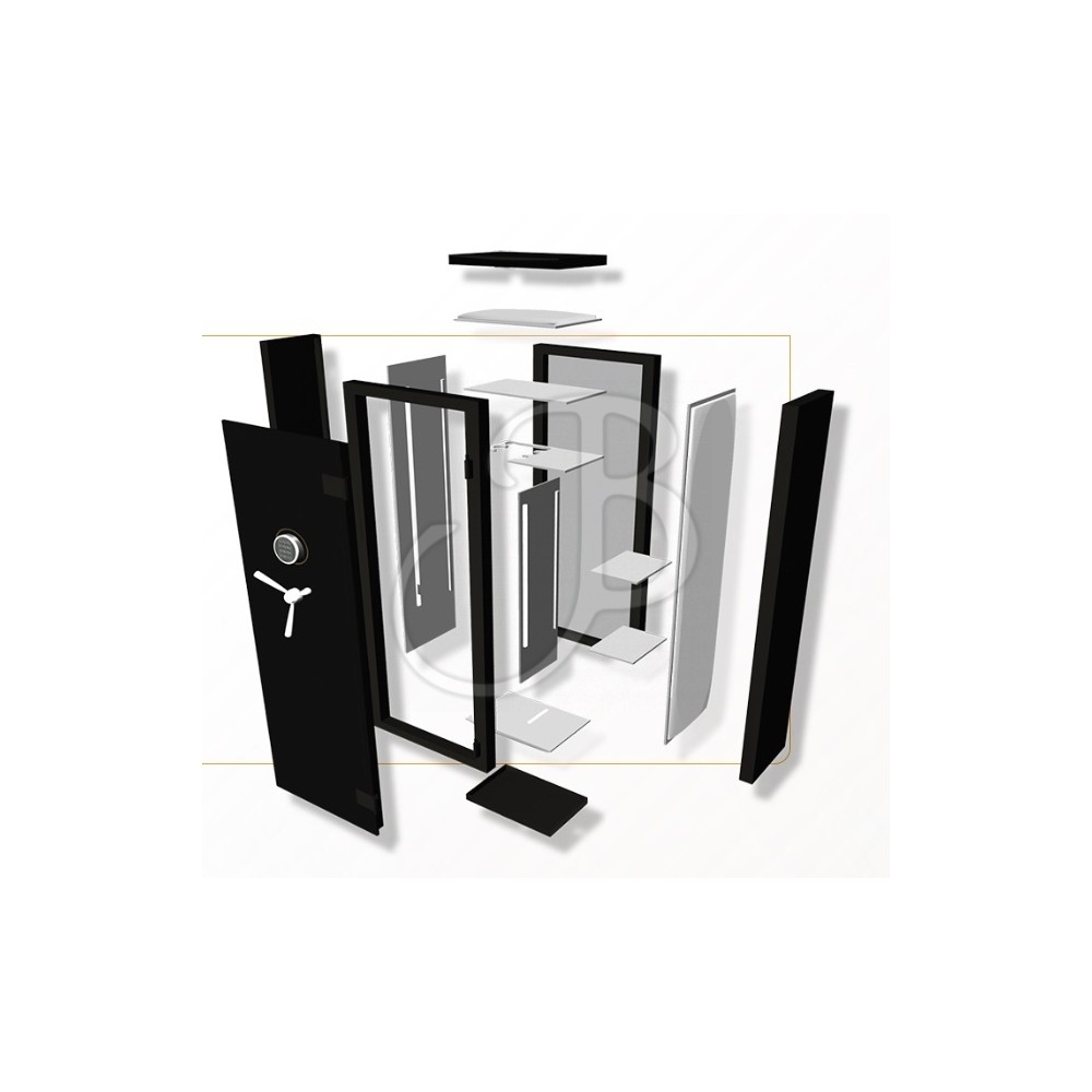 Le casseforti Mobilis™ possono essere trasportate e assemblate pezzo per pezzo in qualsiasi stanza tu scelga. Il kit di attrezzi incluso fornisce tutto il necessario per l'assemblaggio, permettendoti di montare la tua cassaforte in pochi minuti. Verrà consegnata in una cassa di legno.