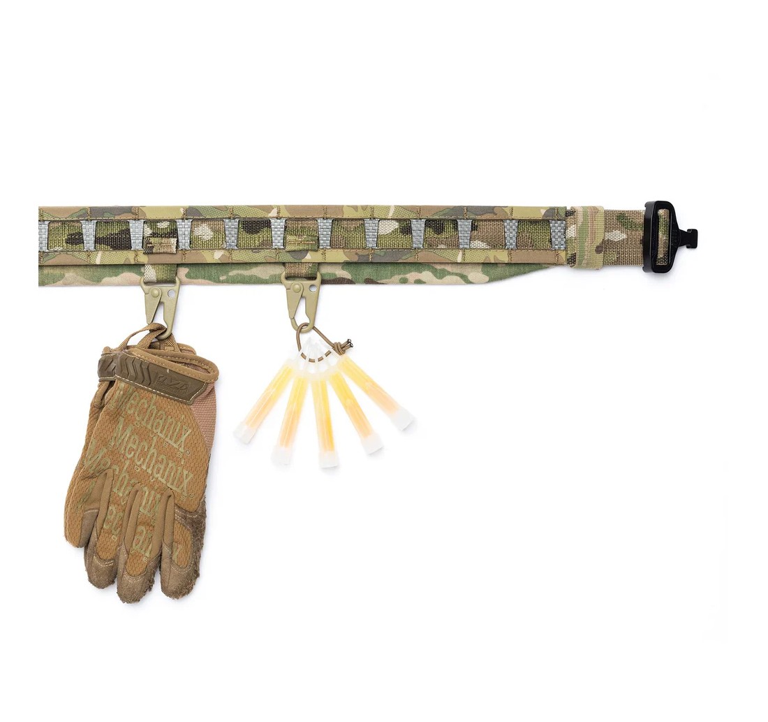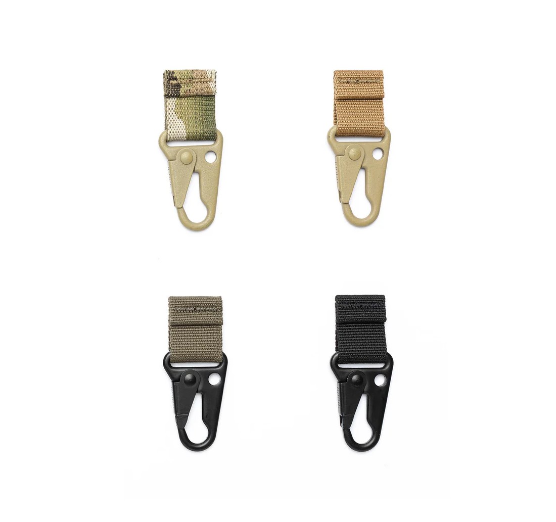 Semplice soluzione per aggiungere un moschettone di tipo “HK Hook” sulle nostre cinture STRATOS e STRATOS Padded, o sulla maggior parte delle cinture tattiche in commercio, molto utile per attaccare alla cintura accessori come guanti, cuffie, Chemlight® o qualsiasi altro oggetto che sia necessario avere a portata di mano.