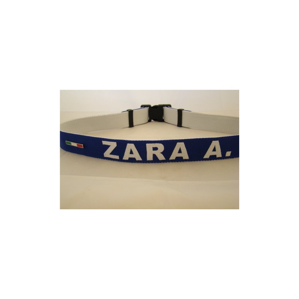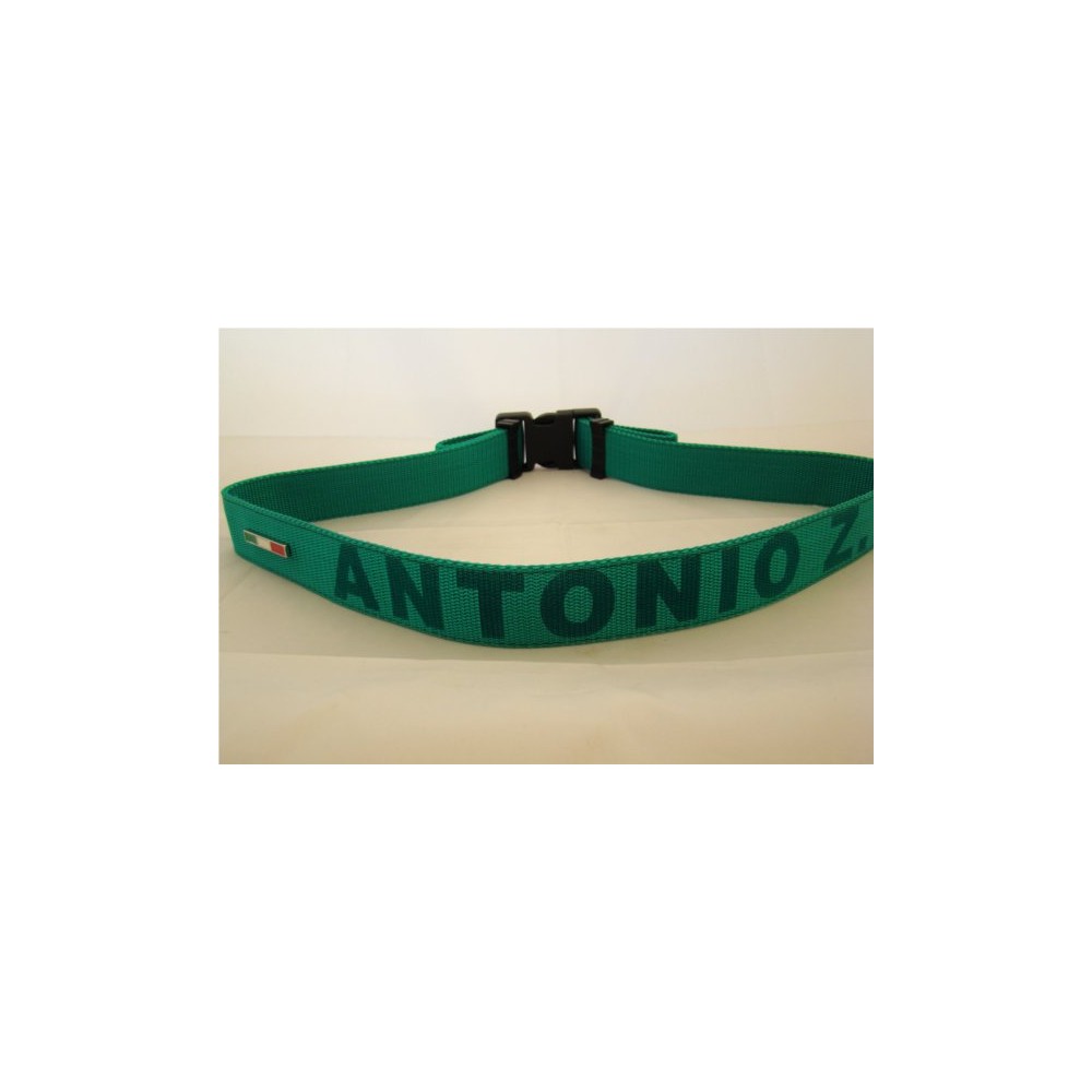 Cintura regolabile in nylon rinforzato. La fibbia è regolabile simmetricamente da entrambi i lati. Nella parte posteriore c'è una placchettina con la bandiera dell'Italia. Disponibile in vari colori.