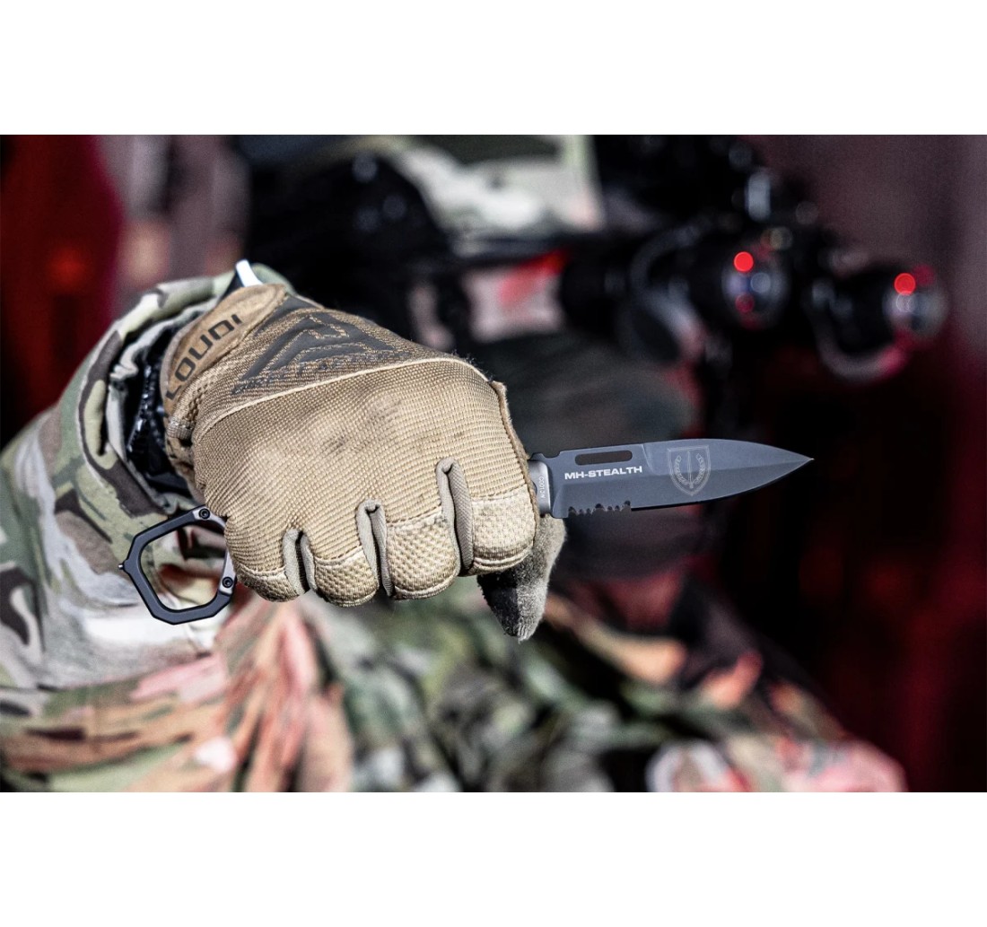MH-STEALTH è un coltello tattico pieghevole dal design innovativo, sviluppato in collaborazione con gli operatori del Kommando Spezialkräfte (KSK) e con la Gemeinschaft Deutscher Kommandosoldaten.