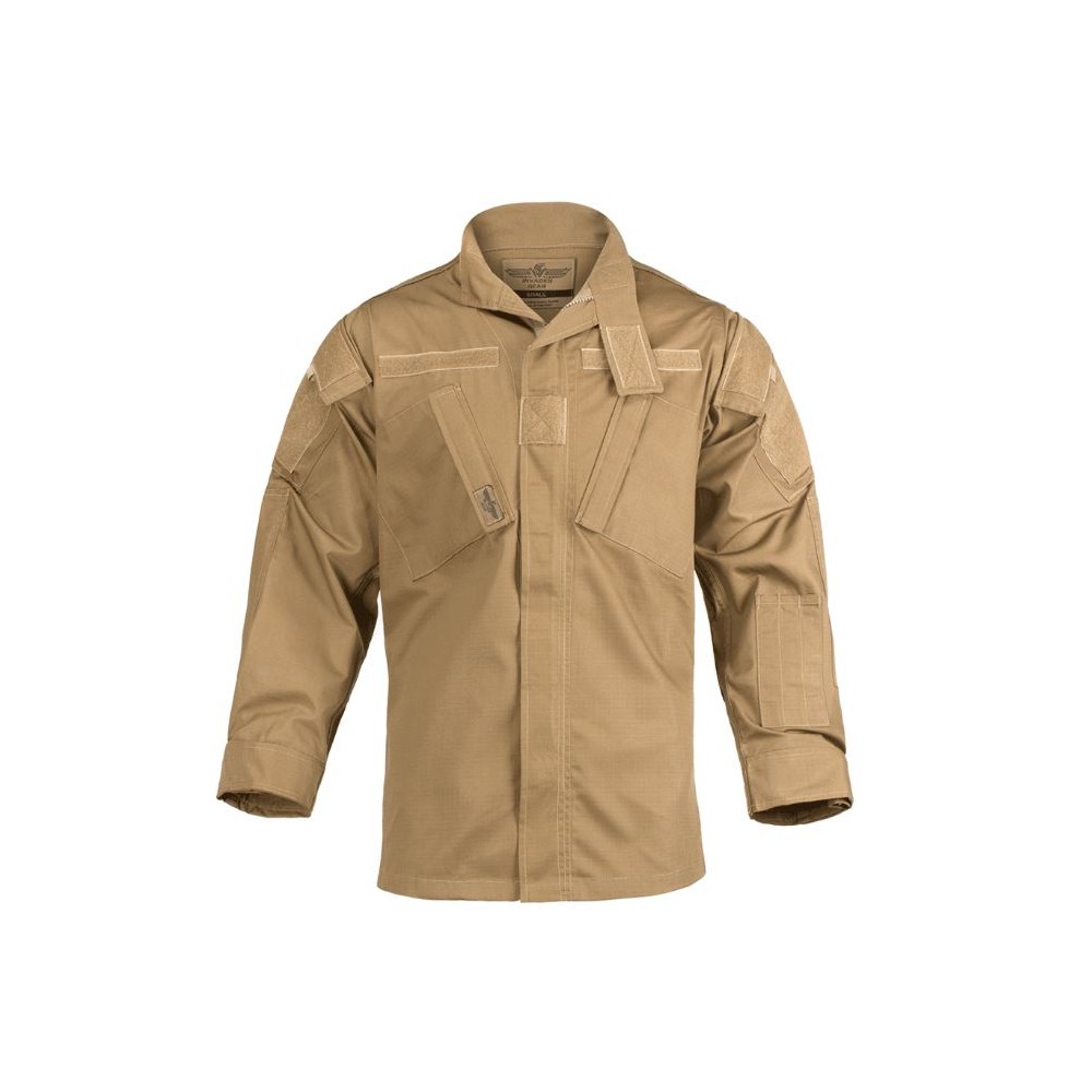 Dotata di polsini regolabili e diversi riquadri in velcro per aggancio di patch e distintivi.