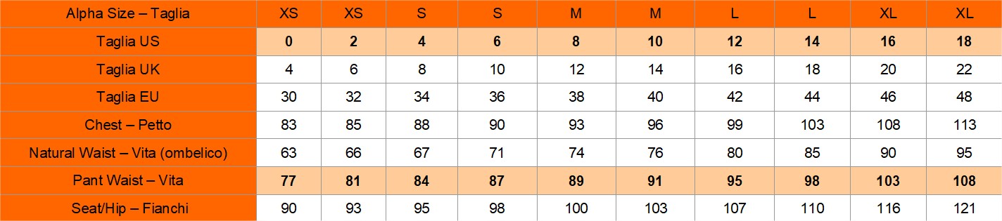 Queste sono le tabelle taglie principali... se avessi qualche dubbio per un articolo in particolare ci puoi contattare e sapremo aiutarti ![]()