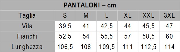 Le misure in base al modello potrebbero variare di 2-3 cm per i pile e di 3-4 cm per i pantaloni.