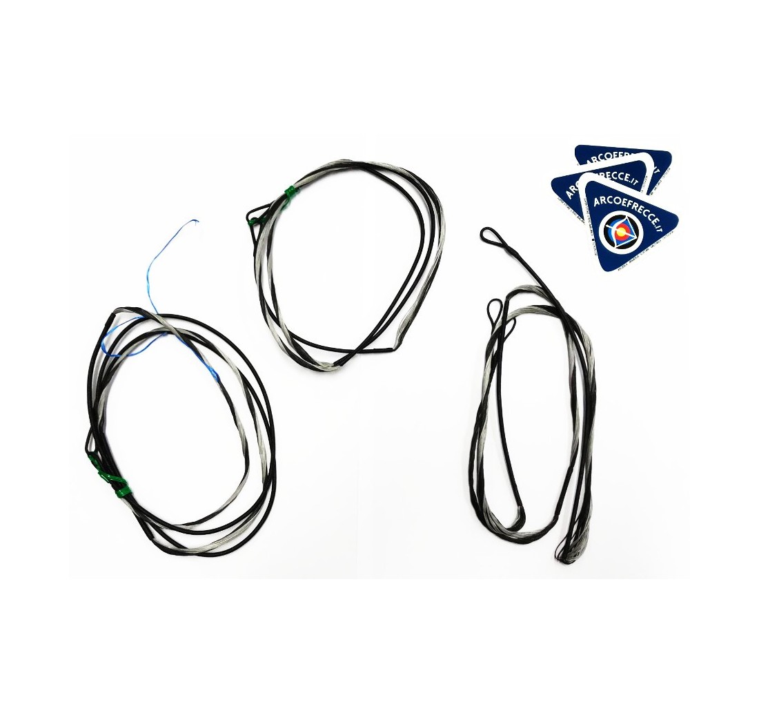 Cablaggio completo (corda + cavi) su misura per qualsiasi compound. Colori a richiesta. Corde e cavi vengono pre-stirati e sono già assestati e pronti da montare e usare.