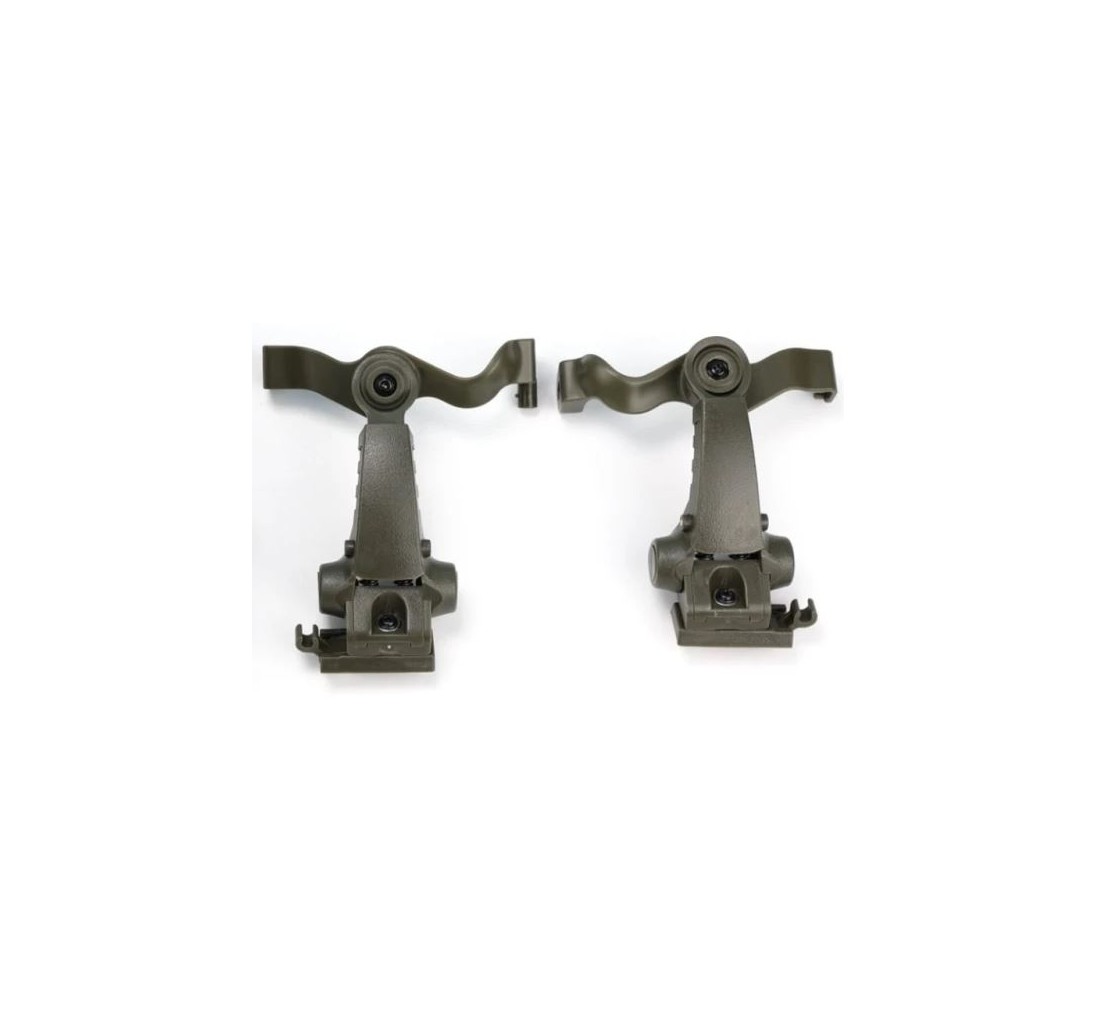 Questi adattatori sono progettati per la compatibilità con i dispositivi di visione notturna e altri accessori, posizionandoli dietro l'orecchio per massimizzare efficacemente lo spazio utilizzabile sulle slitte laterali del casco.