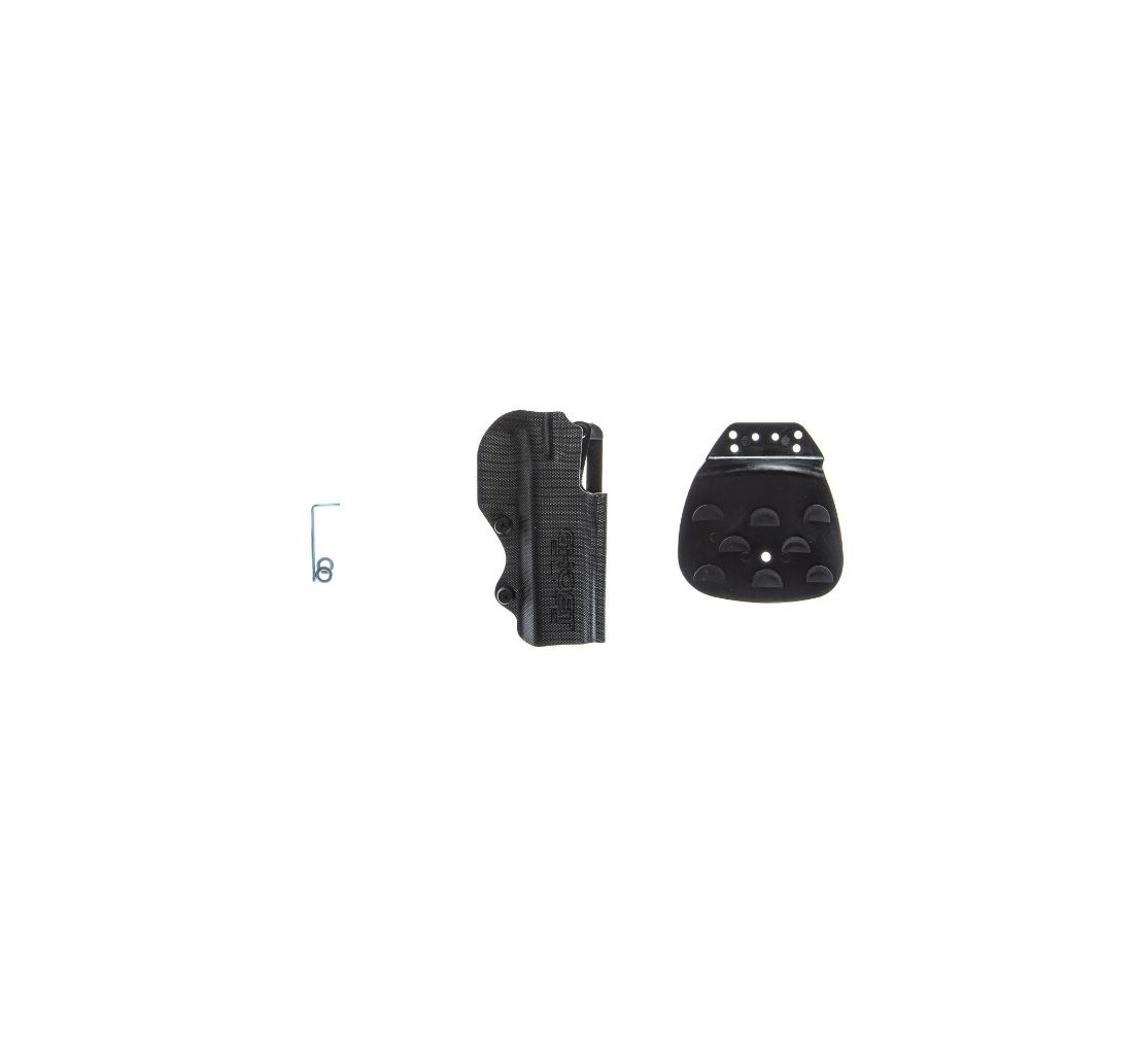 Il corpo della fondina è in polimero ad alta resistenza, internamente dotato di rivestimento in ecopelle scamosciata per una perfetta protezione dell'arma riposta. La fondina è dotata di attacco con passante per cintura regolabile + paddle in dotazione.