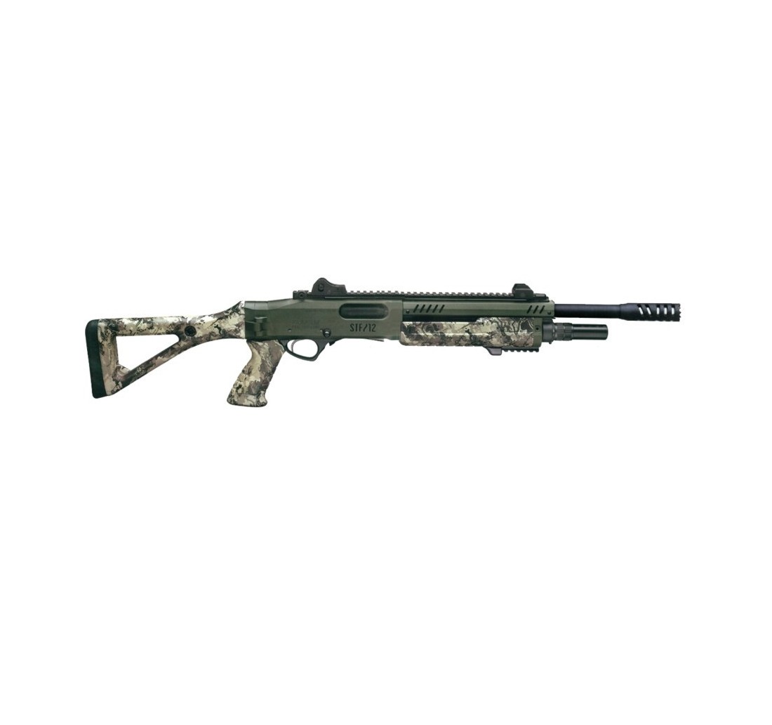 Fucile STF COMPACT calibro 12, con canna da 14", versione Viper, con calcio lateralmente, che assicura un ingombro contenuto, mantenendo la possibilità di sparare dalla posizione chiusa.