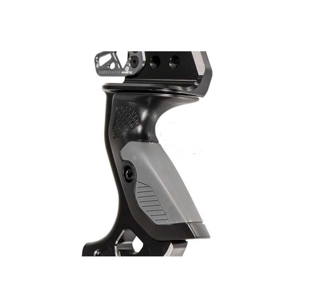 Grip in plastica con strato superiore in gomma per favorire un comodo posizionamento della mano dell'arco ed evitare scivolamenti.