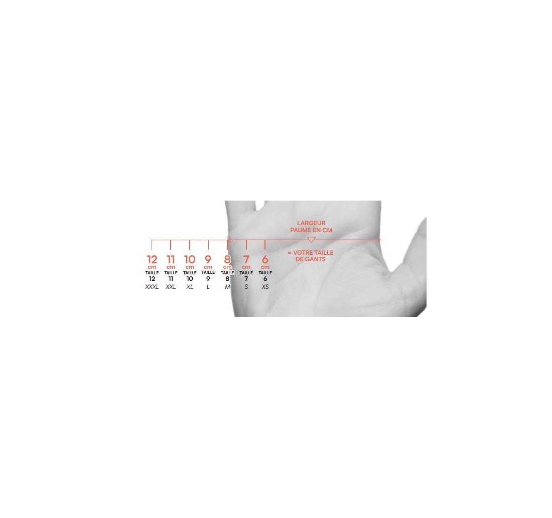 La lunghezza del Vostro palmo in cm, corrisponde alla Vostra taglia di guanti.