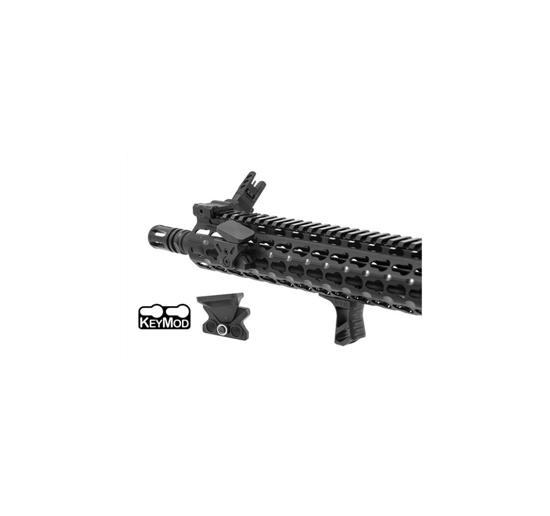 Basetta di appoggio per pollice regolabile ambidestra reversibile per astine rail guardamano con sistema di fissaggio KeyMod. Realizzata in alluminio aeronautico 6061-T6 con macchinari CNC.