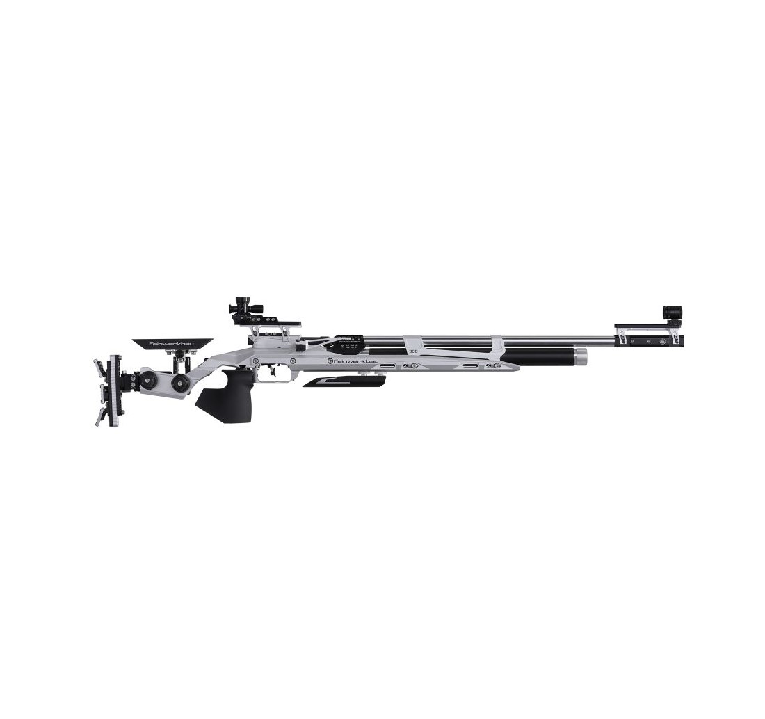 L'unità assorbitore, ulteriormente sviluppata e regolabile, consente un adattamento dell'impulso individuale alle esigenze personali del tiratore. La finestra di caricamento ampliata permette una ricarica confortevole. Il gruppo di scatto, rivisitato per ottimizzare la distribuzione delle forze, è realizzato con componenti di alta precisione in acciaio HSS. Il riduttore di pressione, esente da manutenzione, è stato riprogettato per una funzione del sistema ancora più costante e garantisce una riduzione significativa del rumore durante lo sparo. Il sistema di bedding ottimizzato con doppia chiusura della canna assicura schemi di tiro ad altissima precisione. Il più recente sistema di regolazione dell'impugnatura di Feinwerkbau permette di effettuare quasi tutte le regolazioni desiderate. Il fissaggio a prisma scorrevole del sistema di mira Vario consente un rapido montaggio e smontaggio dell'intera unità diottrica, ideale per proteggere le parti sensibili durante il trasporto.