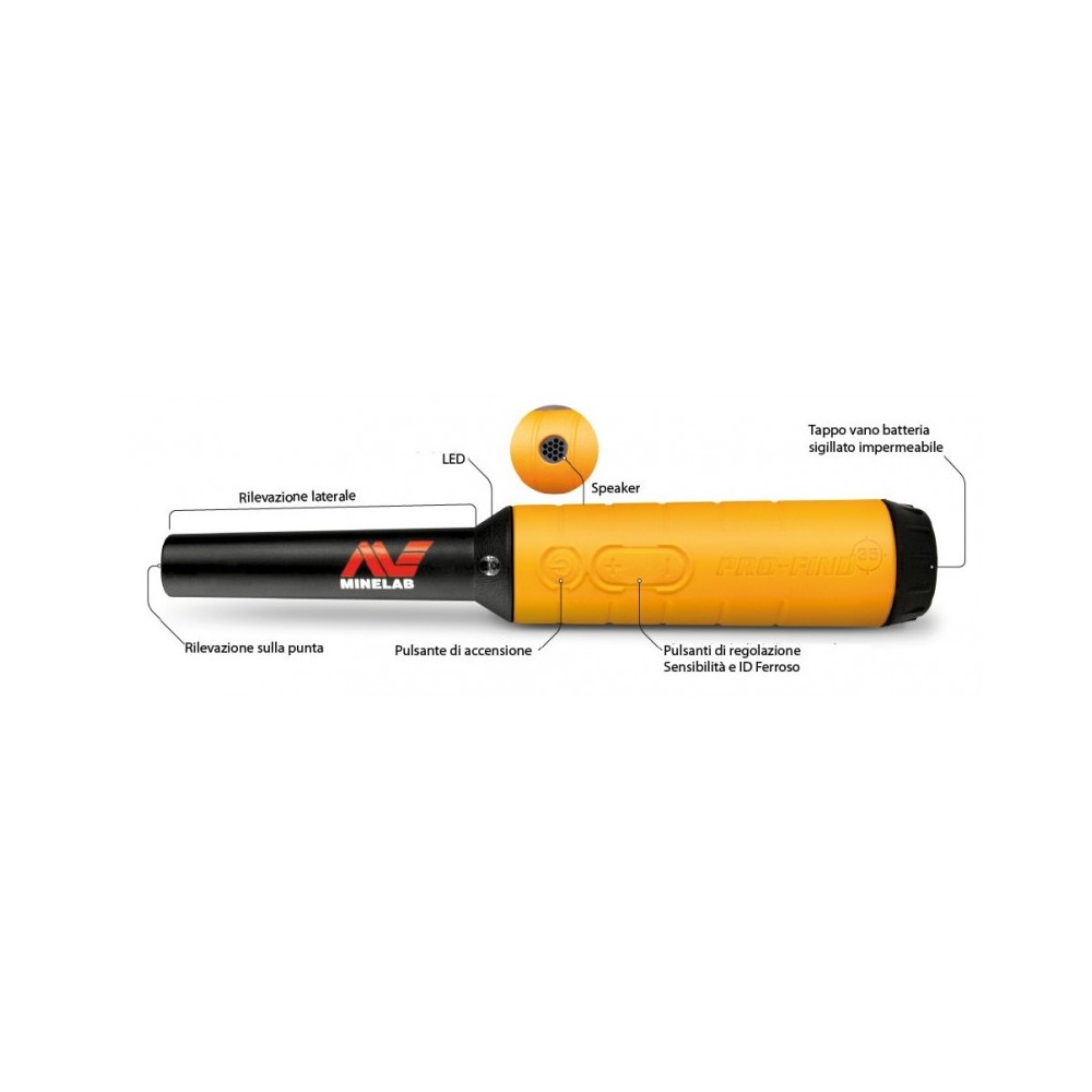 - DIF – La tecnologia brevettata Minelab Detector Interference Free (DIF) riduce notevolmente le interferenze tra il metal detector in funzione ed il pinpointer spento, disattivando il campo magnetico del pinpointer.