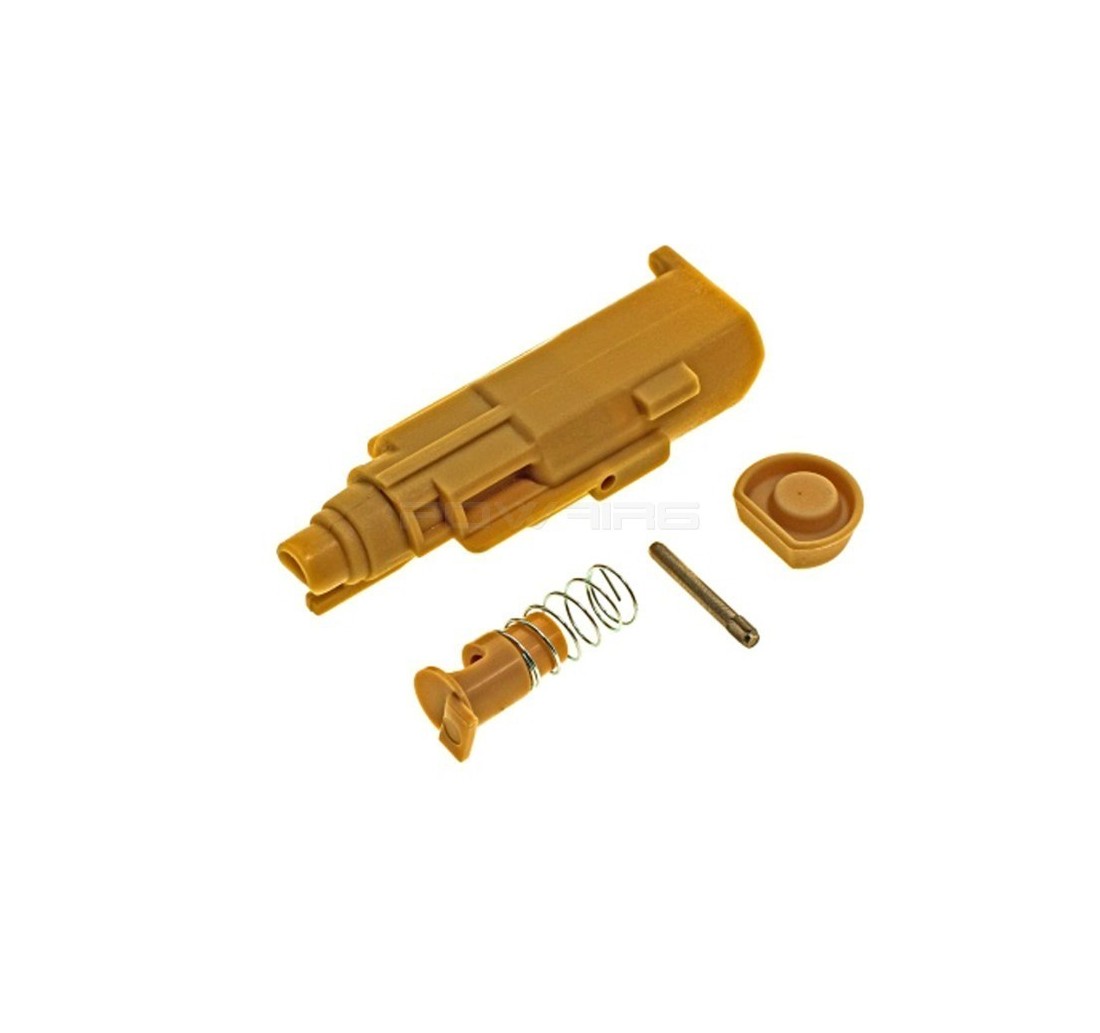 Questo kit nozzle completo in polimero offre una qualità più duratura e resistente rispetto al componente originale della pistola GBB Action Army AAP-01.