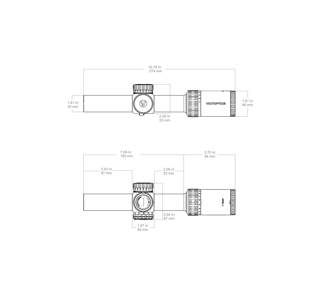 Ottica LPVO VictOptics S10 1-10x24 con attacco Combo di VictOptics in colore nero.