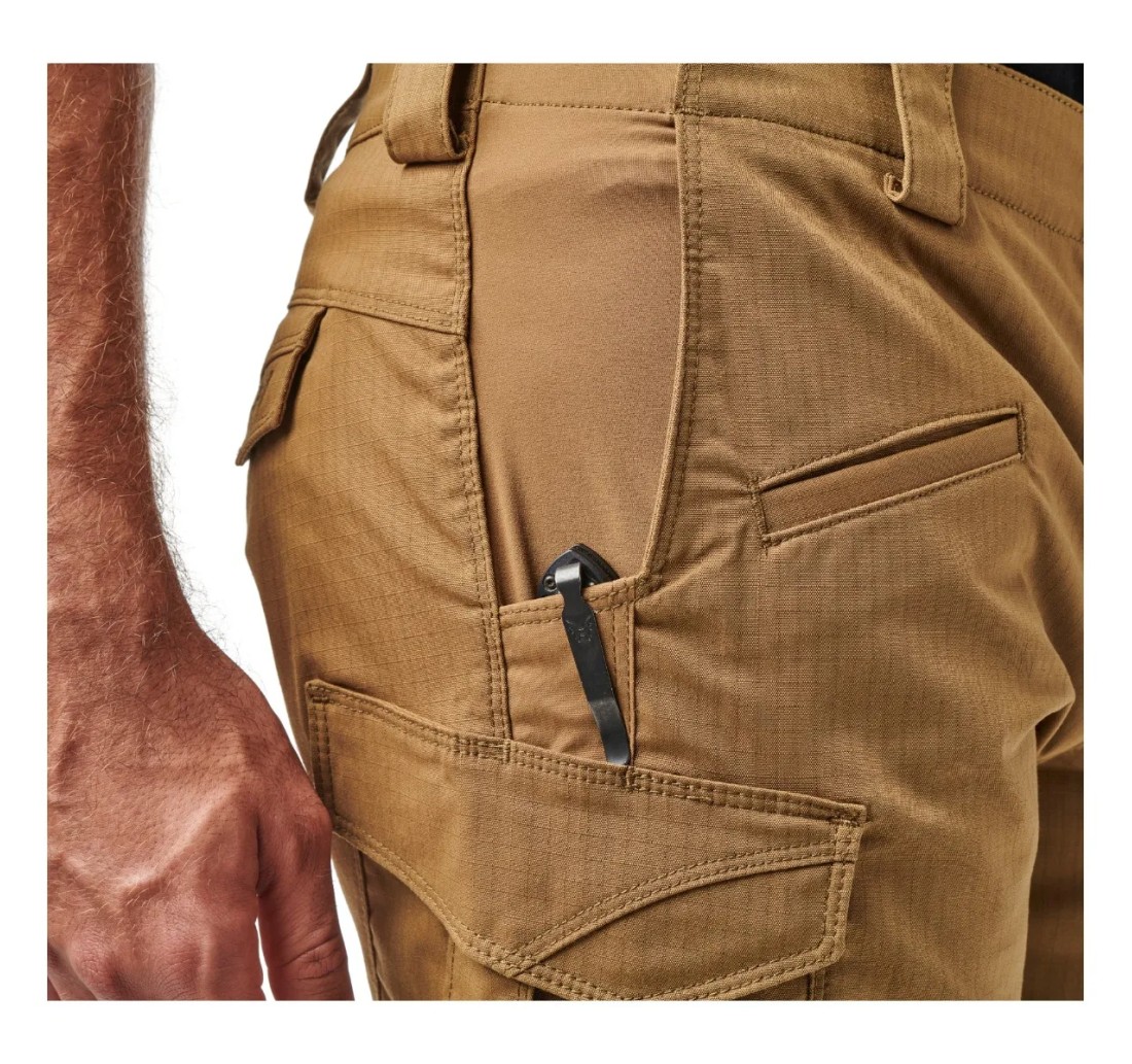 Il modello 5.11 presenta esclusive tasche cargo ad angolo e le pieghe oblique, gli angoli arrotondati, tasca con patta asimmetrica e originali cuciture ad arco