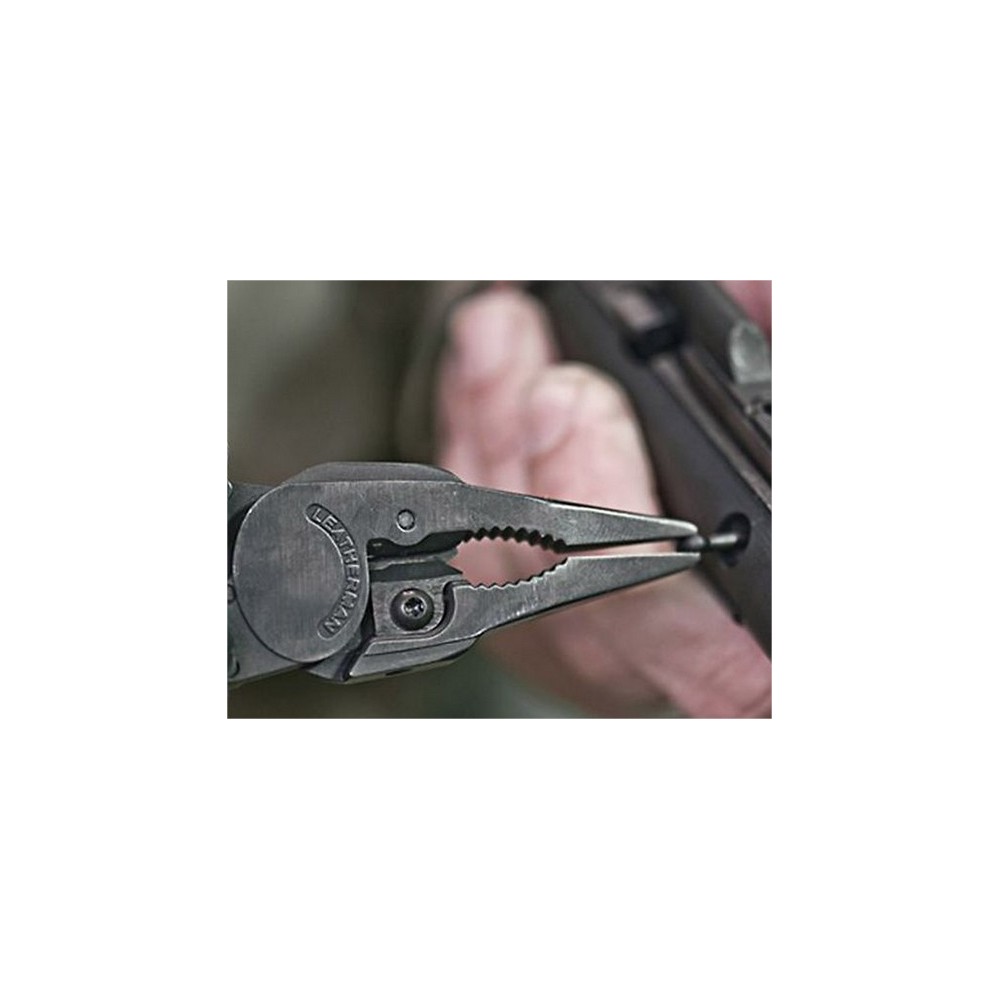 La pinza MUT Leatherman è un attrezzo multiuso pratico e tattico ideale per militari, polizia e tiratori sportivi. Con diverse filettature per scovoli e spazzole, inserti per cacciavite per la regolazione del mirino dell'arma.