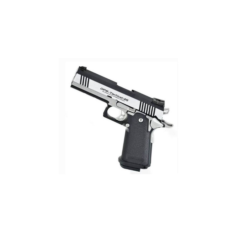 Marui pistola softair a gas 4.3 Custom Dual Stainless HI-Capa, basata sul modello della leggendaria pistola 1911. La pistola è progettata per il tiro dinamico e sportivo.