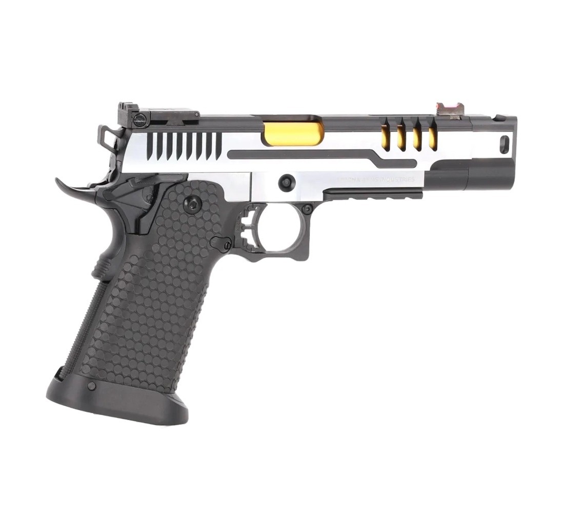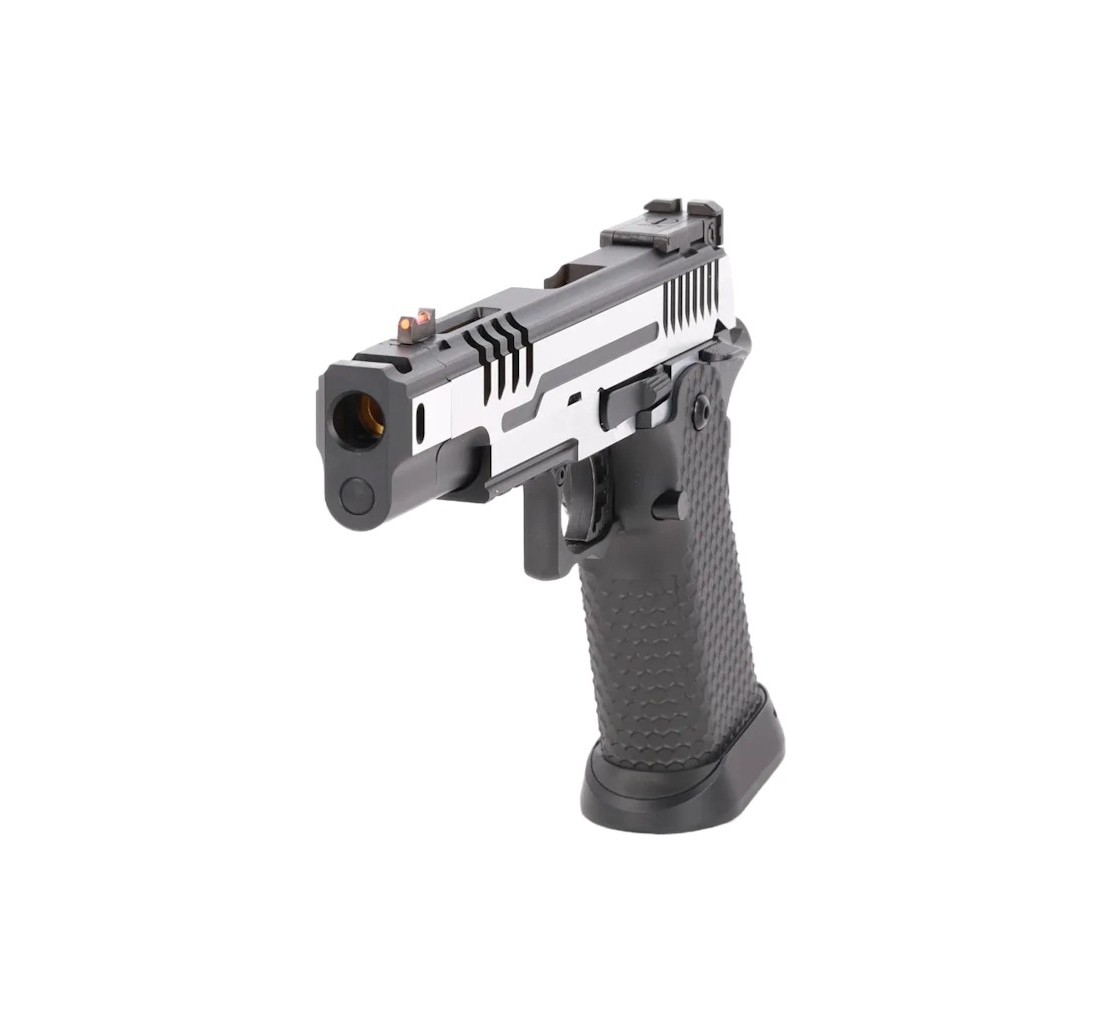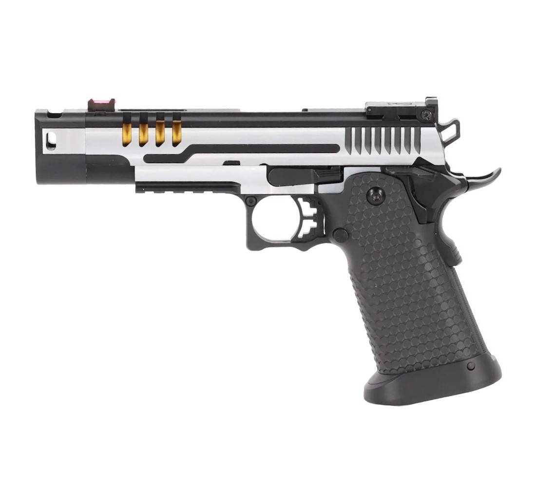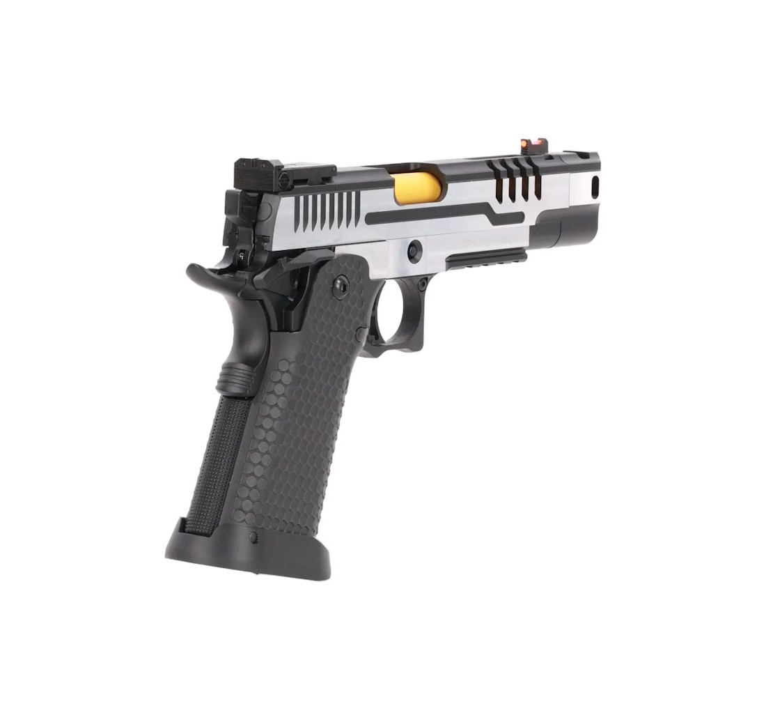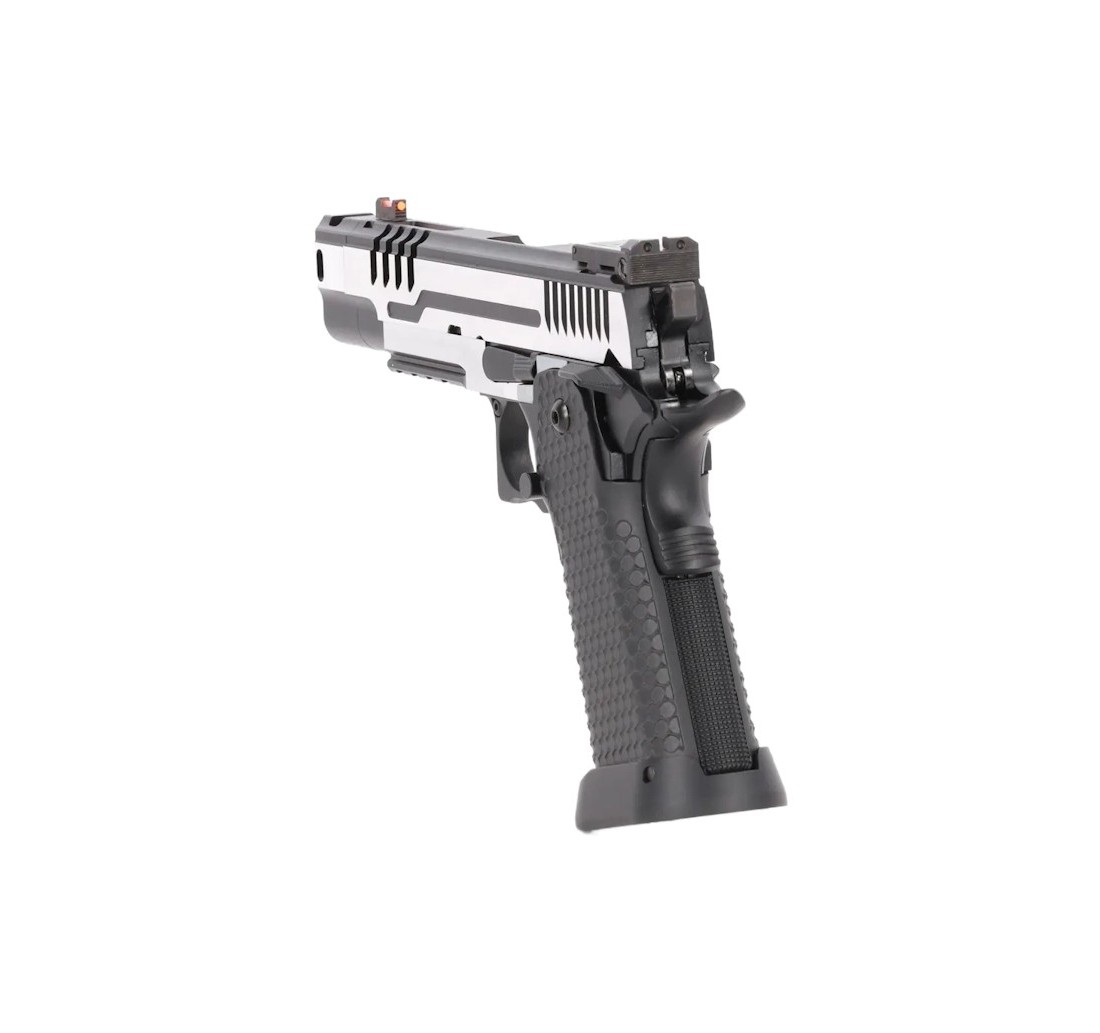È dotata di hop-up regolabile, modalità di sparo sicuro e semi-auto e slitta inferiore da 20 mm per il montaggio di torce o laser. Il sistema blowback garantisce un rinculo realistico, mentre il carrello rimane aperto dopo l’ultimo colpo.