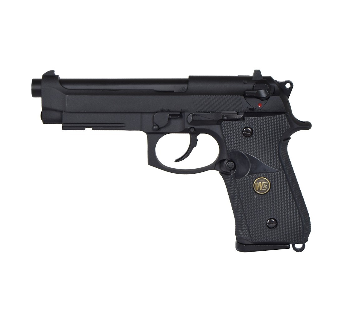 WE pistola softair a gas M9A1 Marine, Full metal con grip in ABS, a gas Scarrellante, Versione Nera.