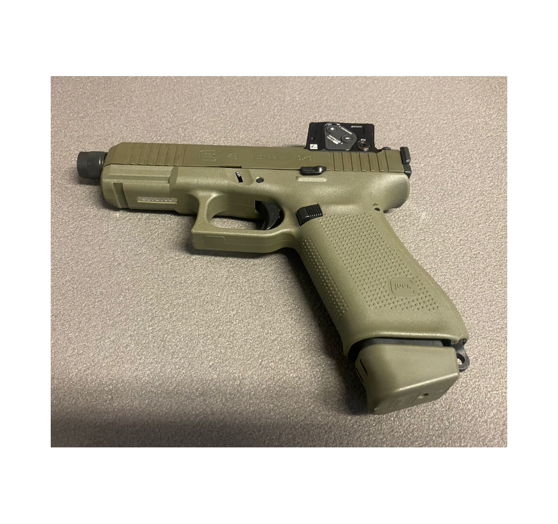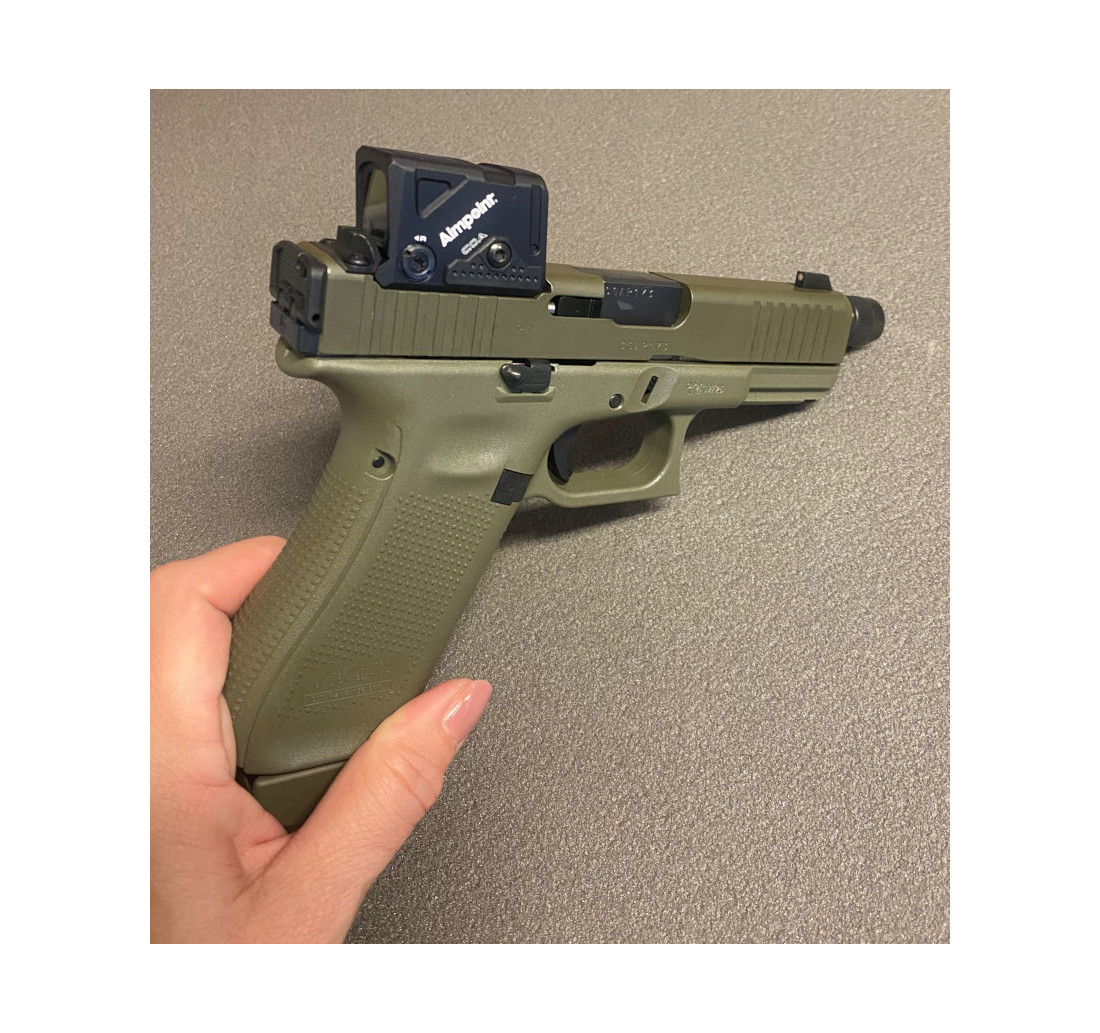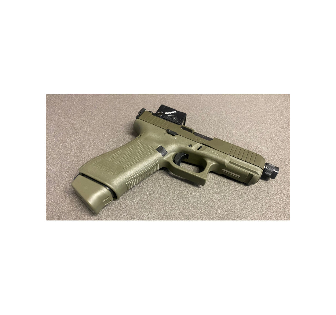 Glock pistola mod 45 5°gen MOS Hunter edition, semiautomatica, safe action system, con canna filettata, finitura verde.