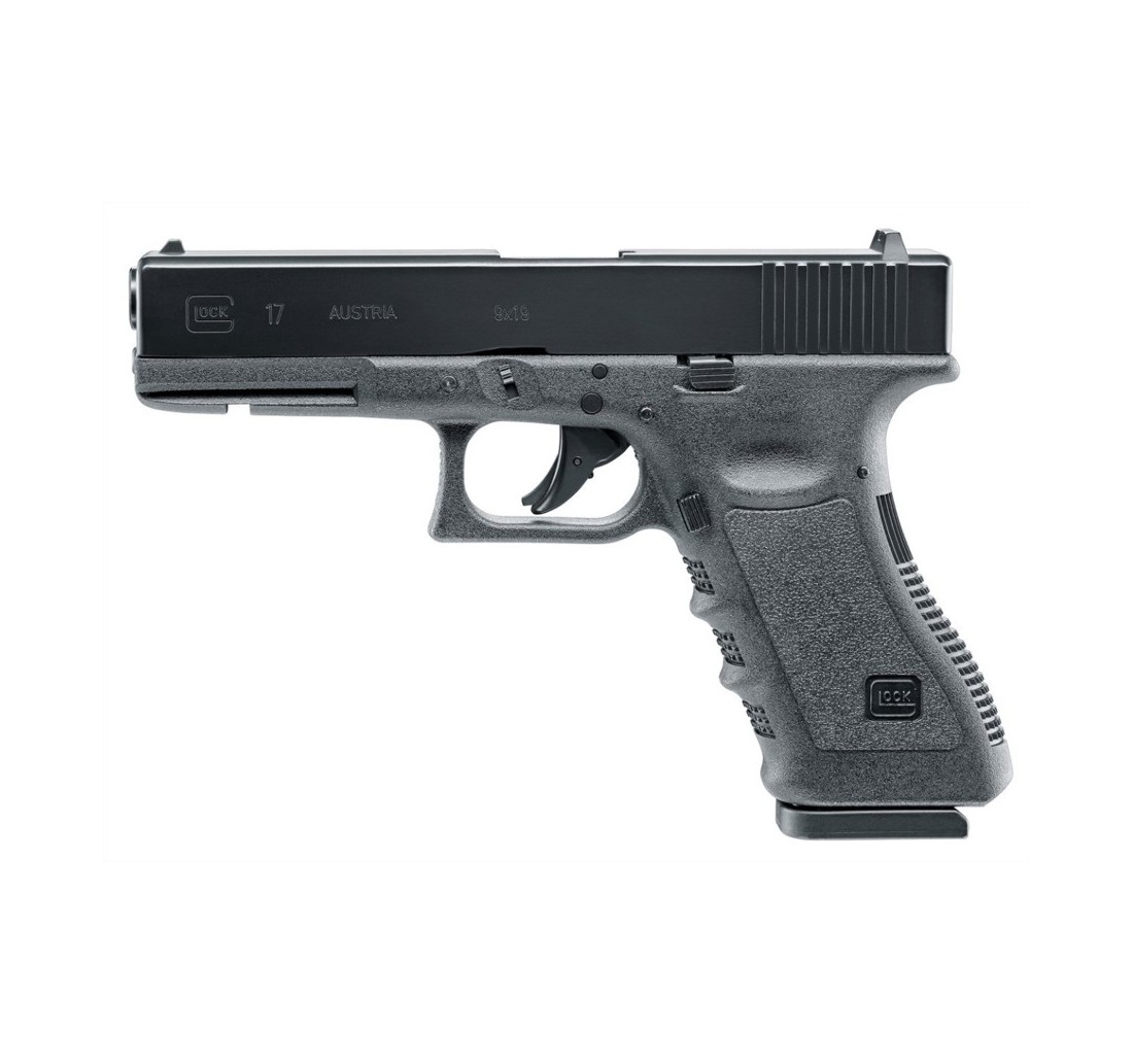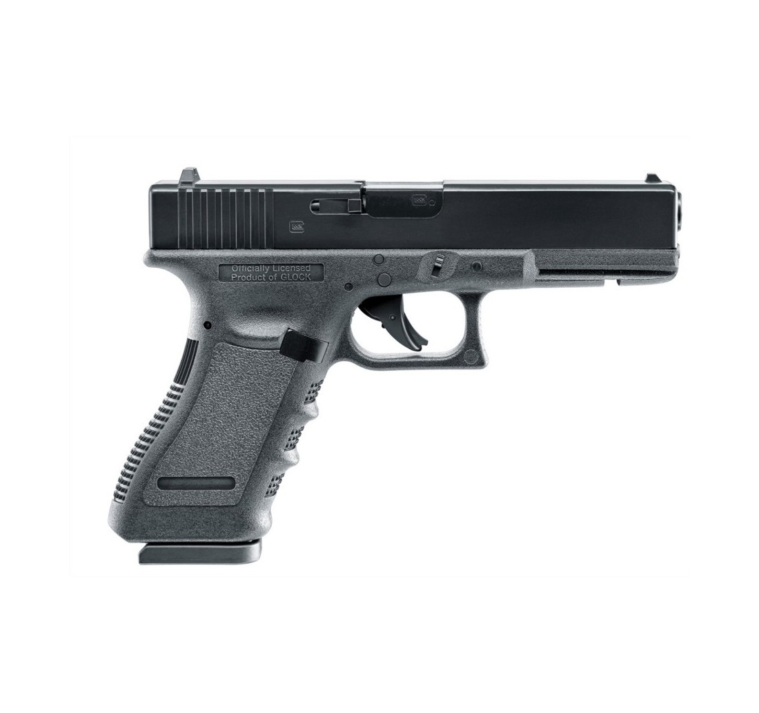 Versione della Glock 17 CO2 di Umarex che spara sia i Diabolo 4,5mm che i pallini sferici (BB). Il fatto che il carrello sia in metallo, e tutti i particolari fedelmente riprodotti rispetto alla versione a fuoco, rende la Glock 17 di Umarex un vero oggetto da collezione. Il contraccolpo rende ogni colpo simile alla realtà, e con la sua canna rigata la Glock 17 offre un'eccellente precisione.