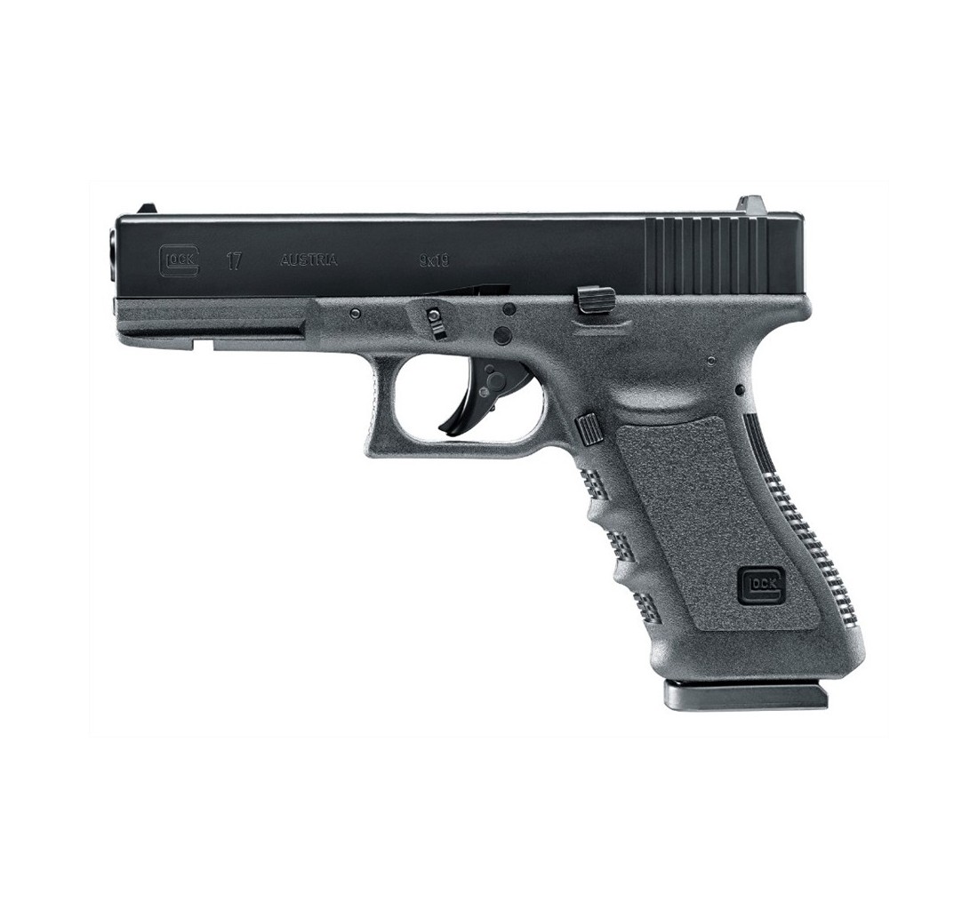 Versione della Glock 17 CO2 di Umarex che spara pallini sferici (BB). Il fatto che il carrello sia in metallo, e tutti i particolari fedelmente riprodotti rispetto alla versione a fuoco, rende la Glock 17 di Umarex un vero oggetto da collezione. Il contraccolpo rende ogni colpo simile alla realtà, e con la sua canna rigata la Glock 17 offre un'eccellente precisione.