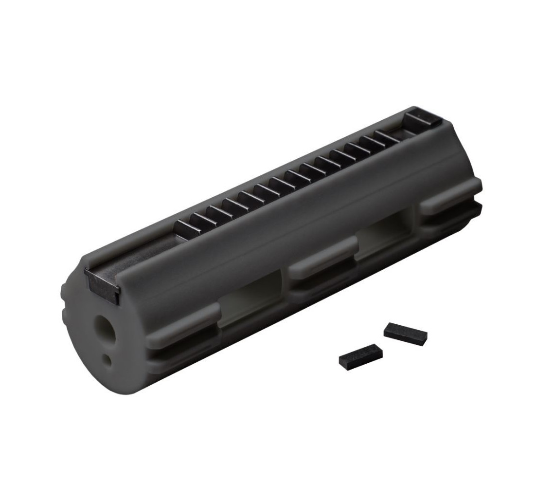 La cremagliera si presenta con il secondo dente mancante e con il terzo già abbassato di 3 decimi di millimetro, in quanto questa configurazione predispone il pistone stesso per un corretto angolo di ingaggio (AOE) e lo rende indicato per l'alta velocità di raffica.
