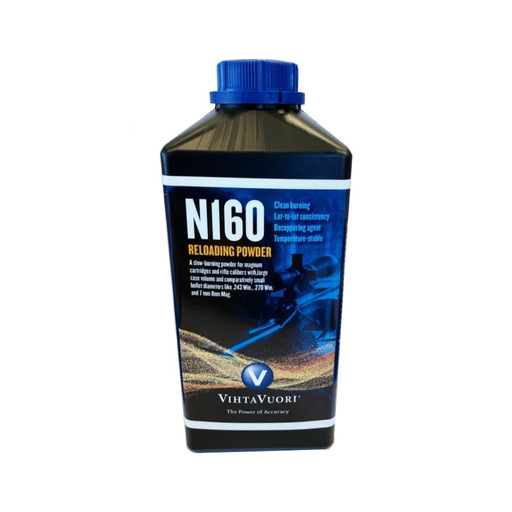 Una scelta eccellente per proiettili di peso medio-leggero in queste cartucce, N160 è stabile alla temperatura e ha una combustione eccezionalmente pulita.