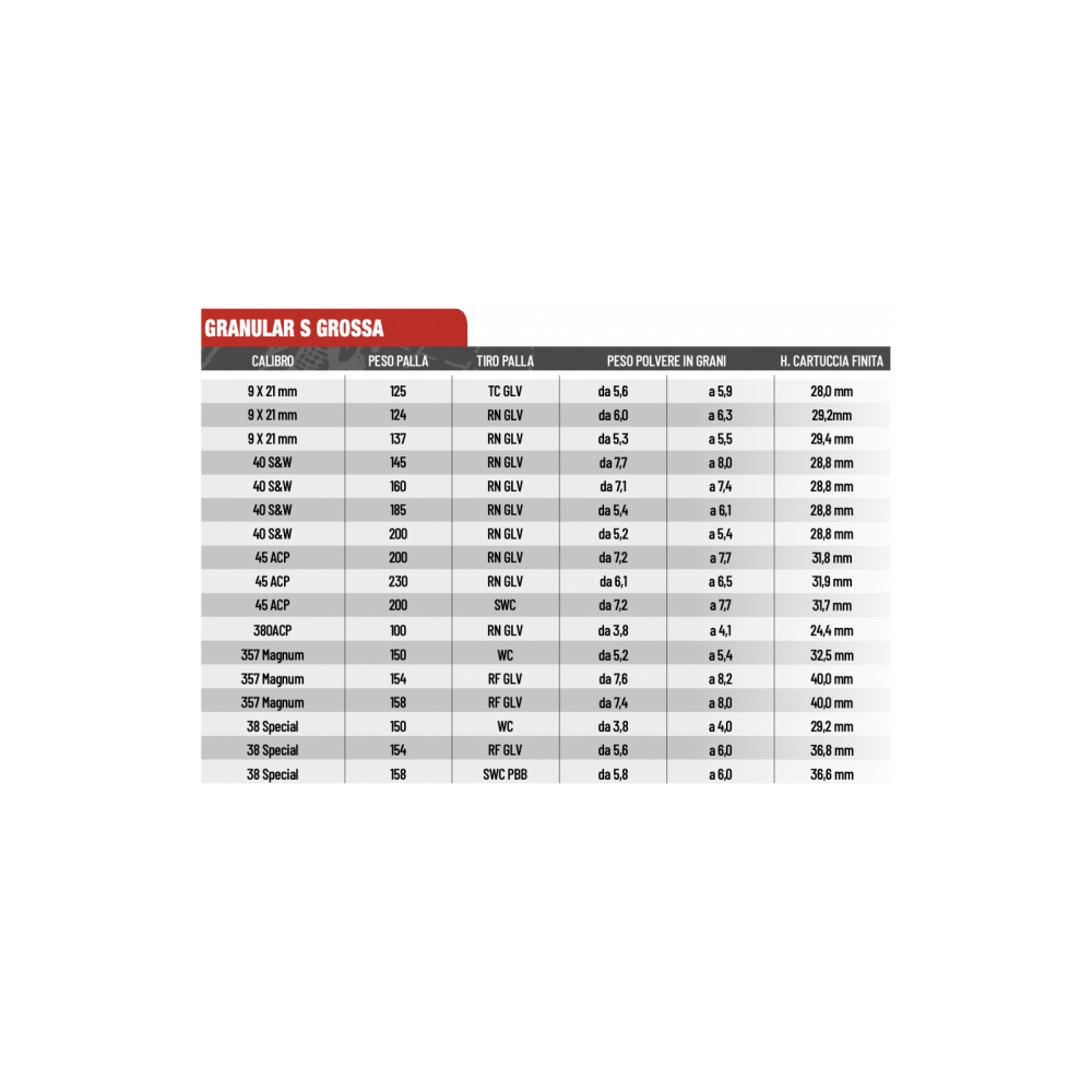La polvere Granular S nasce dalla esperienza Cheddite nell’ambito dei propellenti da lancio per Caccia e Tiro a Volo, ed ora con una nuova formula che rivisita l’aspetto chimico e morfologico, è proposta come soluzione alle esigenze della ricarica di munizionamento metallico per pistola e revolver. Confezione da 0,5Kg.