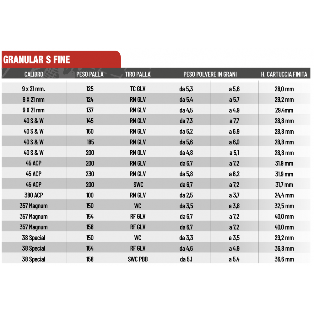 La polvere Granular S nasce dalla esperienza Cheddite nell’ambito dei propellenti da lancio per Caccia e Tiro a Volo, ed ora con una nuova formula che rivisita l’aspetto chimico e morfologico, è proposta come soluzione alle esigenze della ricarica di munizionamento metallico per pistola e revolver.