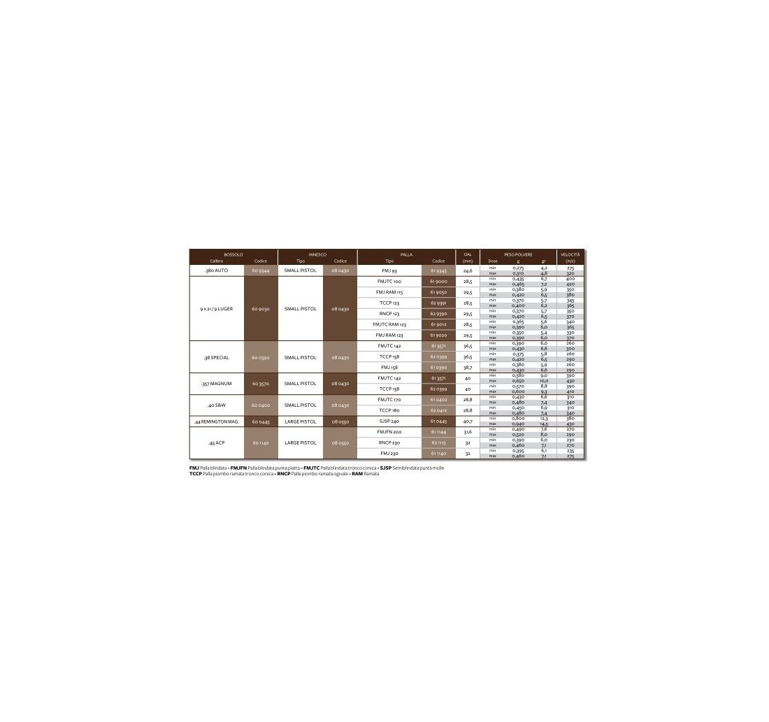 Per calibri: 9 mm (9x21 e 9 Luger), .380 AUTO, .38 Special, .357 Magnum, .40S&W, .44 Remington Magnum, .45ACP.