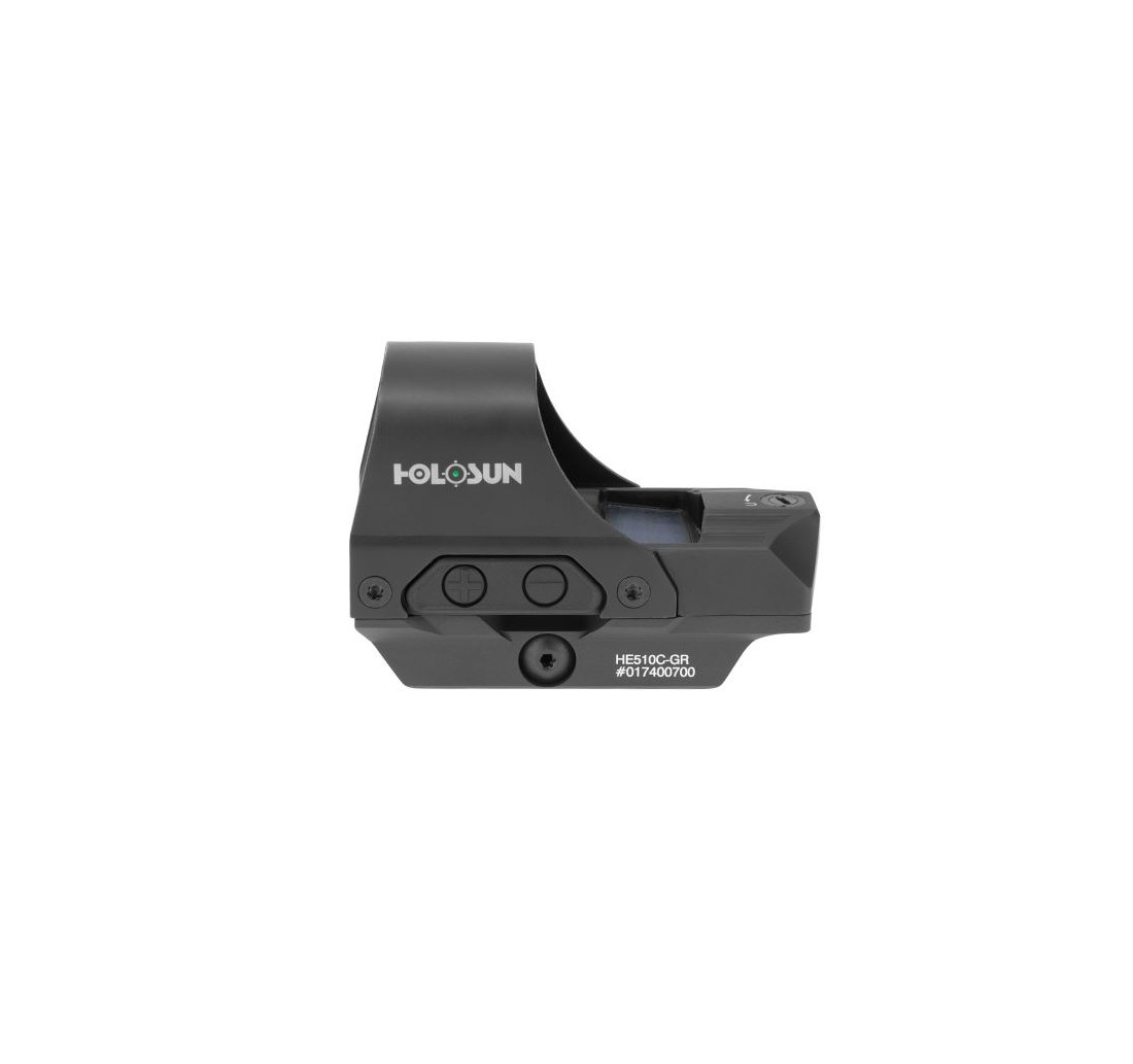 L'HE510C-GR è dotato di innovazioni Holosun, tra cui Solar Failsafe, Shake Awake, MRS (Multi-Reticle System), Green Super LED con una durata della batteria fino a 50.000 ore, con 10 impostazioni di intensità compatibili con la visione diurna e 2 con visione notturna.