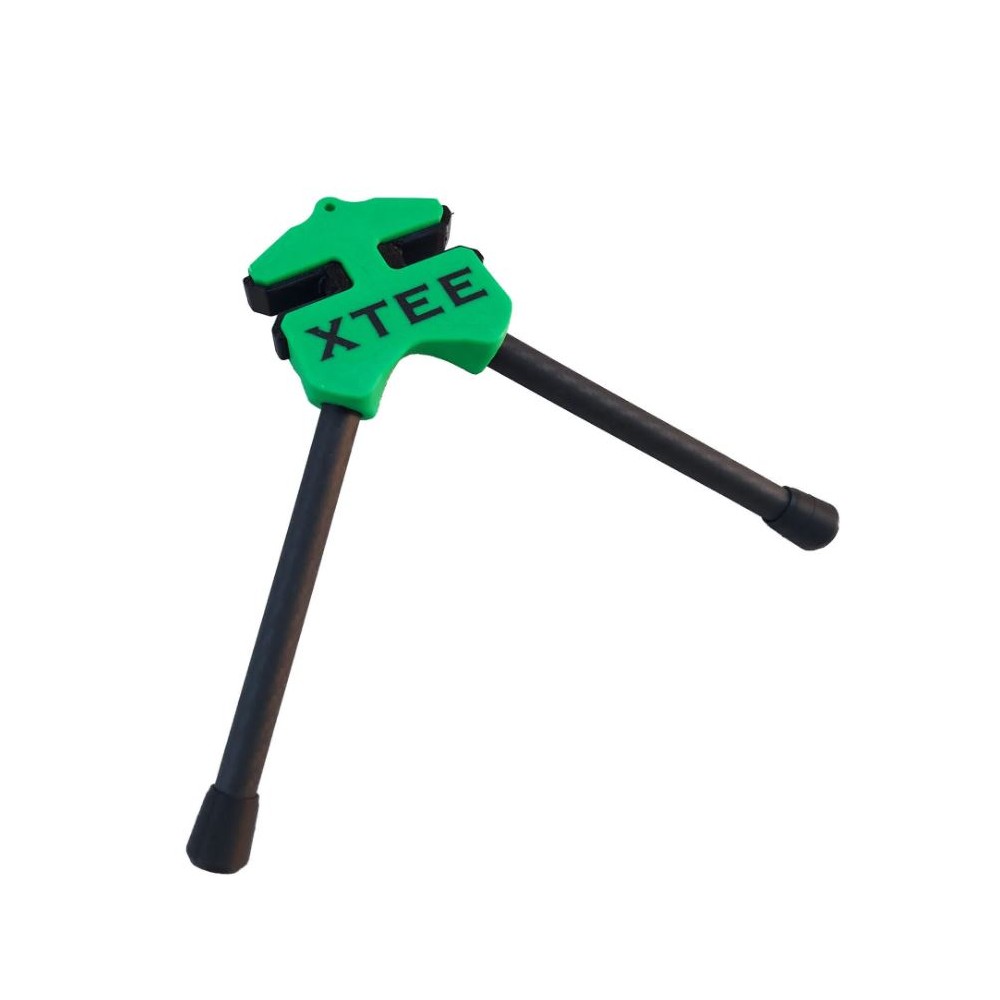 Comodo e pratico cavalletto per compound. Si infila tra i flettenti e permette di posizionare a terra l'arco in modo estremamente stabile. Nella nuova versione la struttura del cavalletto in carbonio è uguale per tutti i compound. Quello che fa la differenza è la gomma di varia larghezza che si inserisce sul cavalletto a seconda del modello di compound per il quale deve essere utilizzato.