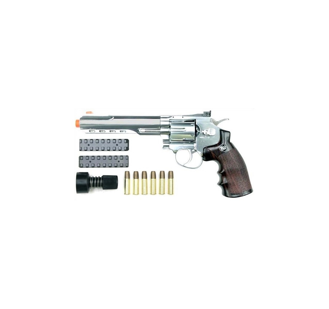 Win Gun pistola softair a CO2 C702, Full Metal, con canna da 6" e tamburo girevole.