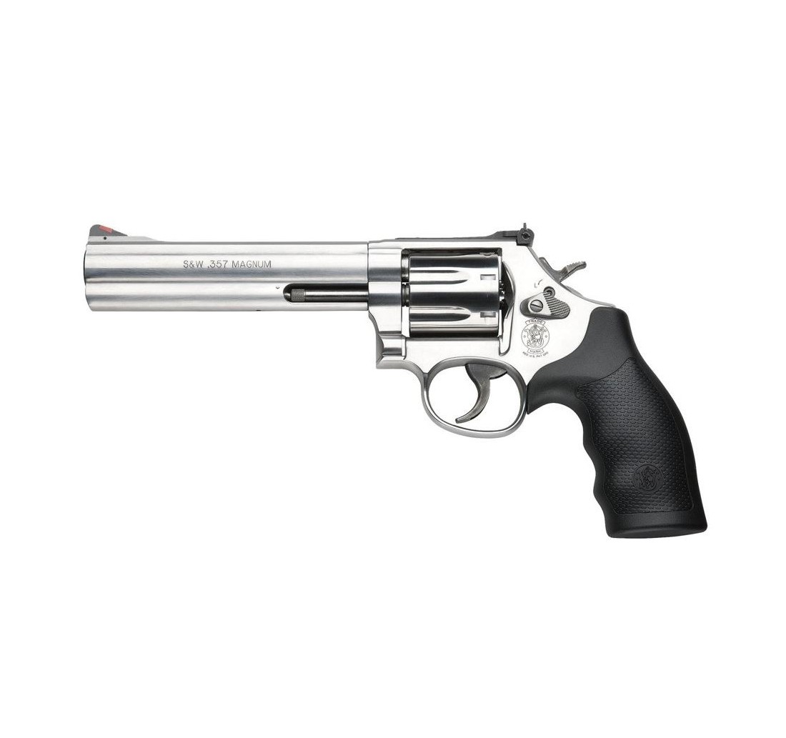 S&W Revolver Mod. 686 con canna da 6" in calibro 357Mag: in acciaio inox con guancette anatomiche in gomma.